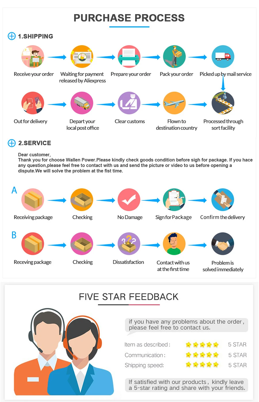 Пожалуйста, предоставьте нам Доказательства видео, если продукты имеют какие-либо проблемы после получения посылки в течение 7 дней, мы предложим замену или возврат средств после подтверждения проблемы. Мы предлагаем 12 месяцев гарантии на оборудование для каждого продукта без личных ошибок.