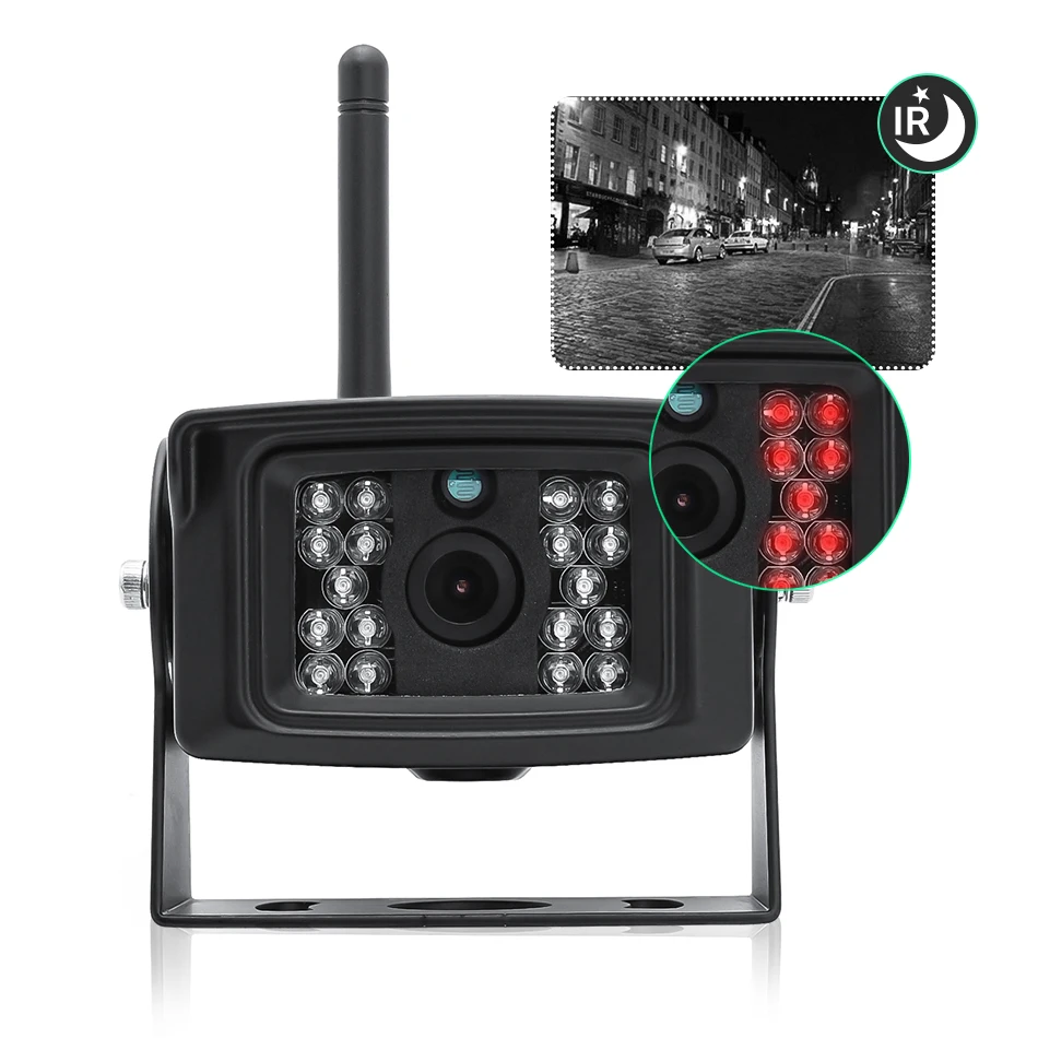 * Превосходное качество: комплект беспроводного монитора заднего хода имеет Уровень водонепроницаемости IP69, что обеспечивает идеальный обзор в любую погоду. Вам никогда не придется беспокоиться о попадании пыли, лягушки, тумана или воды даже во время сильных ливней. Автоматически переключается на функцию ночного видения благодаря 18 инфракрассветодиодный дам