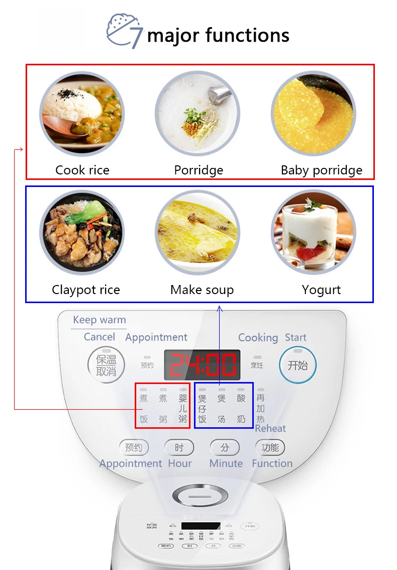 Функции: горячий рис, каша, клейковатый рис, суп, йогурт, рисовая готовка, детская каша