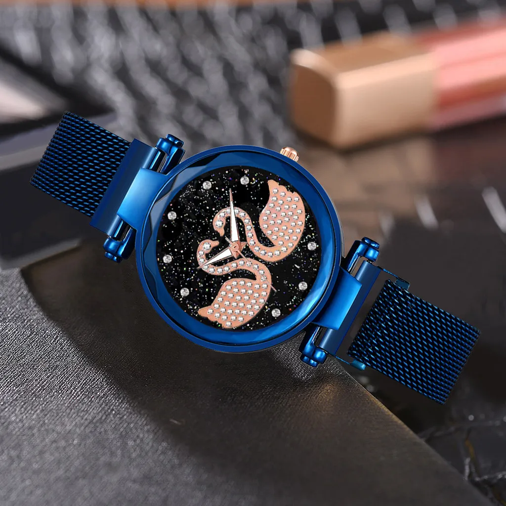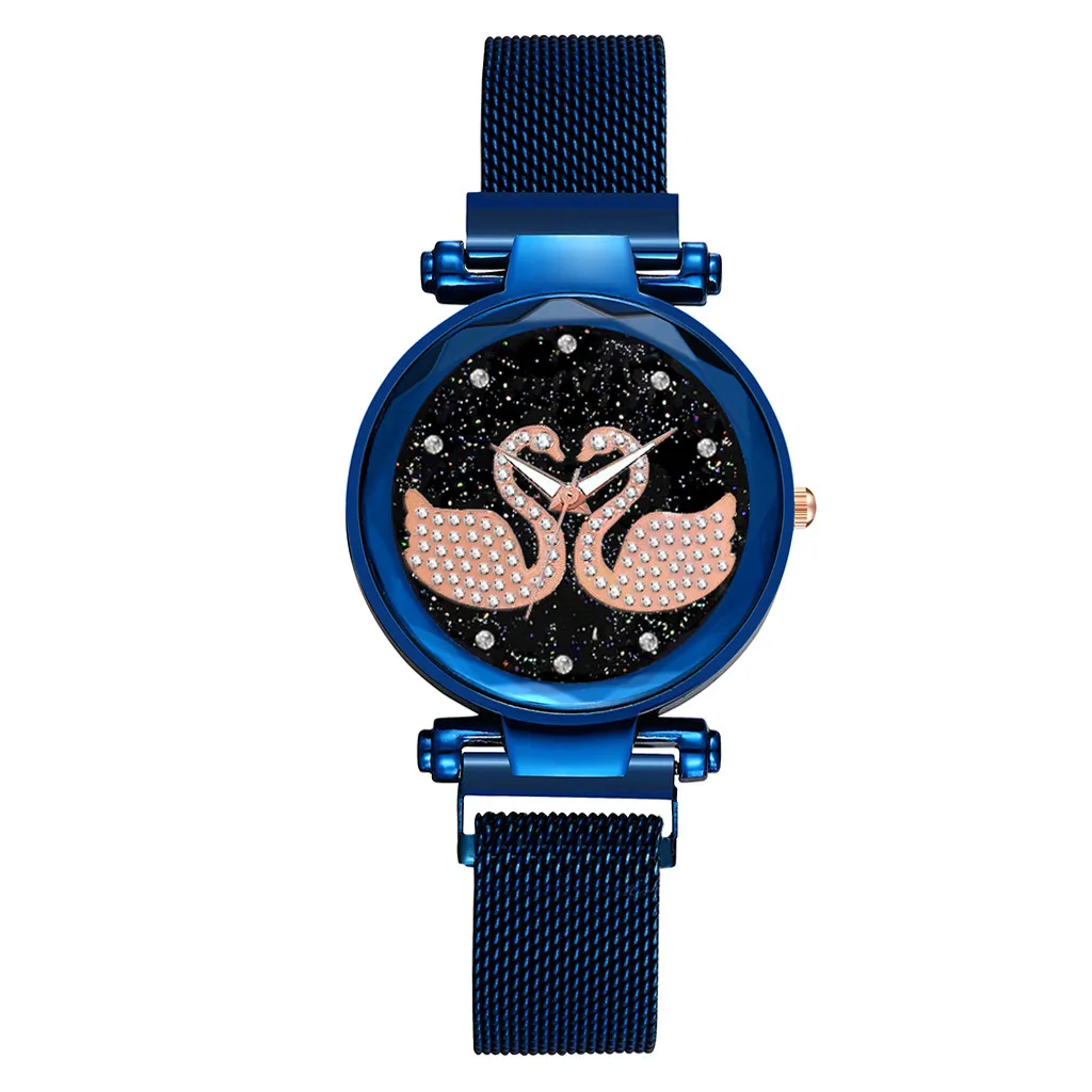 Женские наручные часы с магнитом, камнями, лебедем и бриллиантом, Женские повседневные кварцевые часы с ремешком, женские часы с изображением звездного неба, dameshorloge # N03