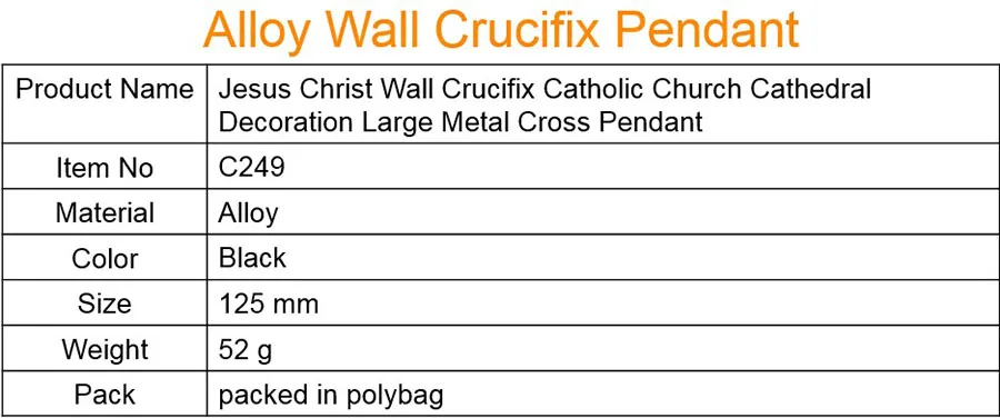 Настенное Распятие Иисуса Христа, католическая церковь, собор, украшение, большой металлический крест, подвеска Артикул: F249C Материал: сплав Цвет: серебристый Размер: 125 мм Вес: 52 г Упаковка: упаковано в полиэтиленовый пакет