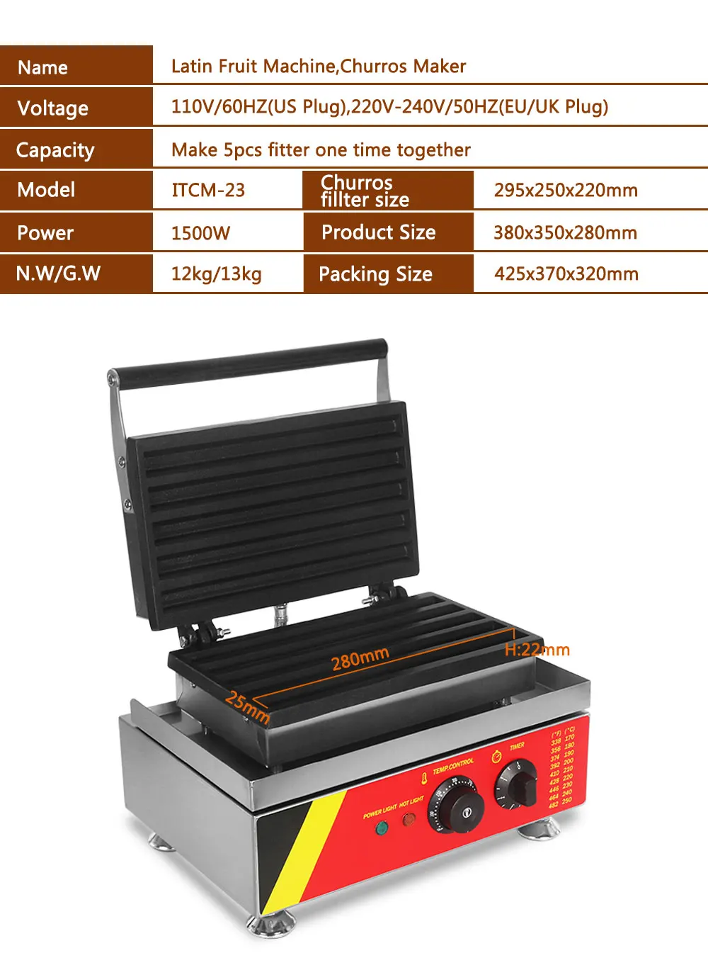 ITOP Электрический Churros Maker Нержавеющая сталь 1500 Вт Коммерческих Чуррос наполнитель антипригарное покрытие вафельный латинские фрукты машина