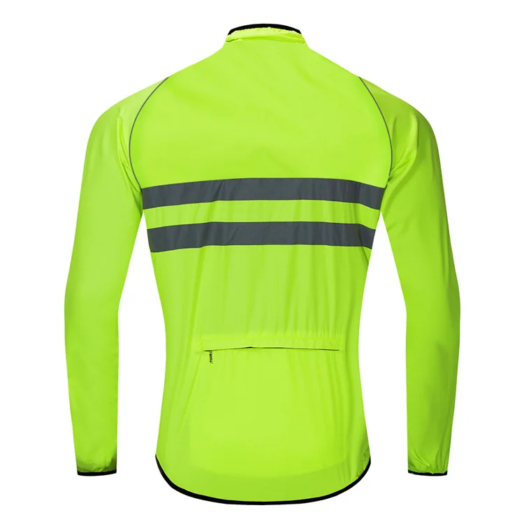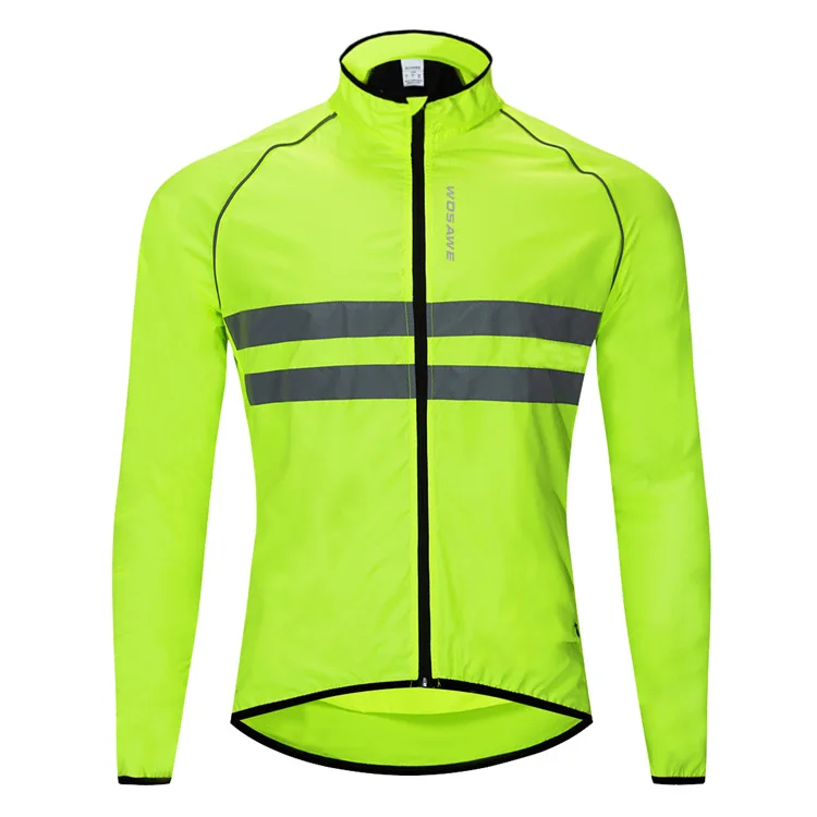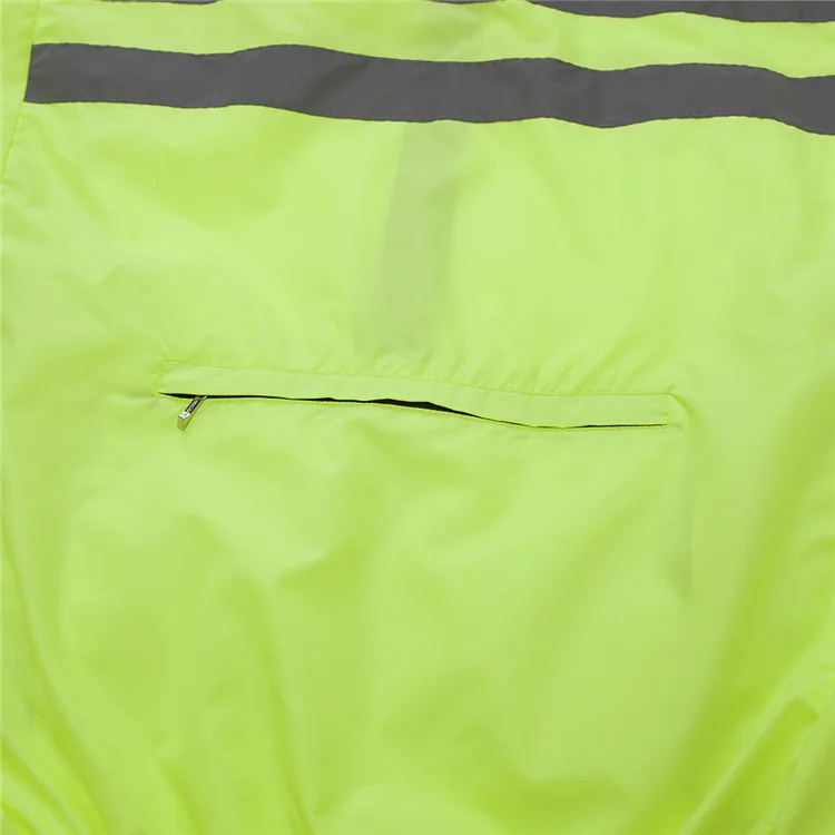 Extremely light shell jacket provides all-round protection for cool rides Water repellent fabric keeps off splashes as well as light rain Reflective strip and line in the pront and back provides safe night cycling & Jogging etc. Covered zipper rear pockets for storage Breathable mesh fabric design on both sides, make vents and pockets into one. Elastic gripper on the bottom prevents jacket from riding upSpecification