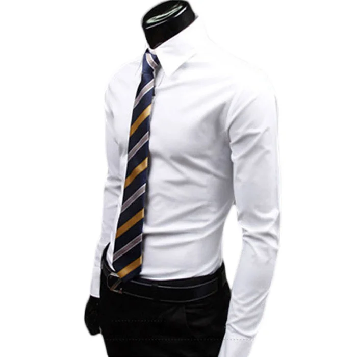 Men Long Sleeve Shirt Cotton Social Solid Business Slim Fit Turndown Collar Shirts Clothing FEA889