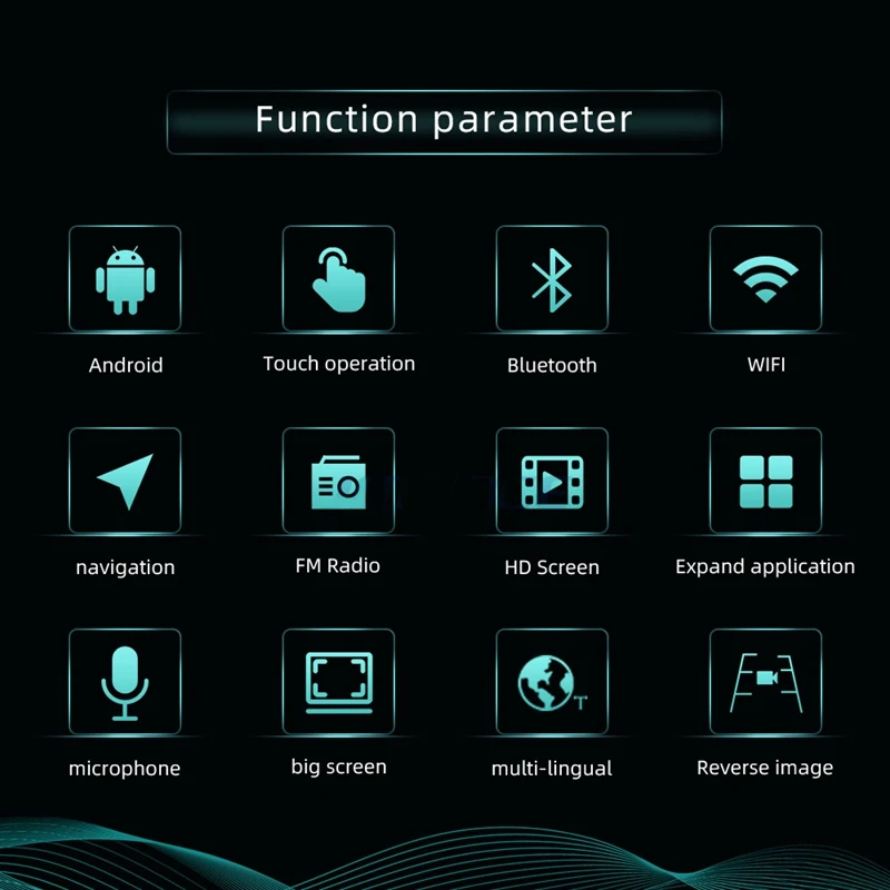 Fm-радио; Чтение u-диска (аудио/видео/картинка); функция Bluetooth; RCA аудио выход, может быть подключен к сабвуферу; функция заднего вида; видеовход; видеовыход; функция обучения рулевого колеса автомобиля; может установить рекордер; wifi доступ в Интернет; gps-навигация; зеркальная ссылка (для Android/для ISO); может установить приложение.