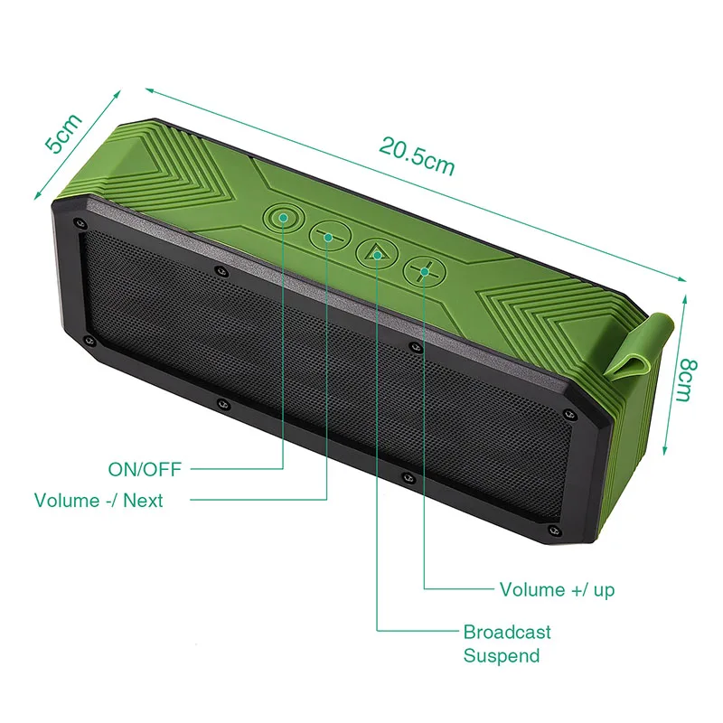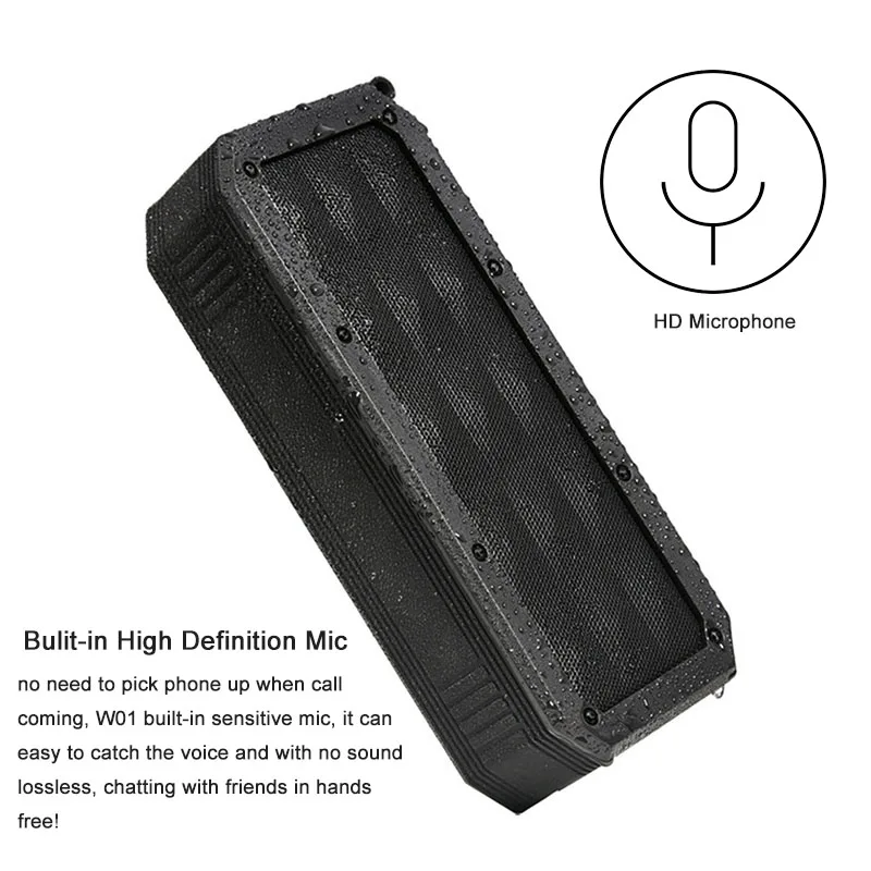 Номер модели: W01 Версия Bluetooth: BT5.0 Способ подключения: AUX 3,5 мм jack/ Bluetooth 5,0/Micro SD/TF карт до 32 Гб Функция: с IPX7 водонепроницаемый портативный bluetooth динамик Емкость: встроенный аккумулятор 2000 мАч, может работать до 12 часов в течение длительного времени Драйвер: 5 Вт * 2, outpur 10 Вт Мощный звук Вес нетто: 0,65 кг Размер: 203*50*80 мм Функция: Громкая связь (встроенный микрофон высокой защиты)