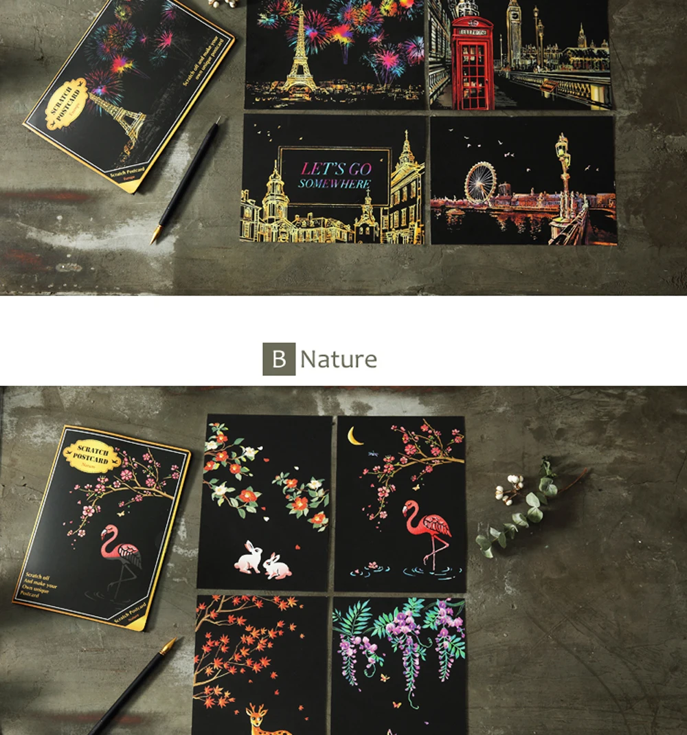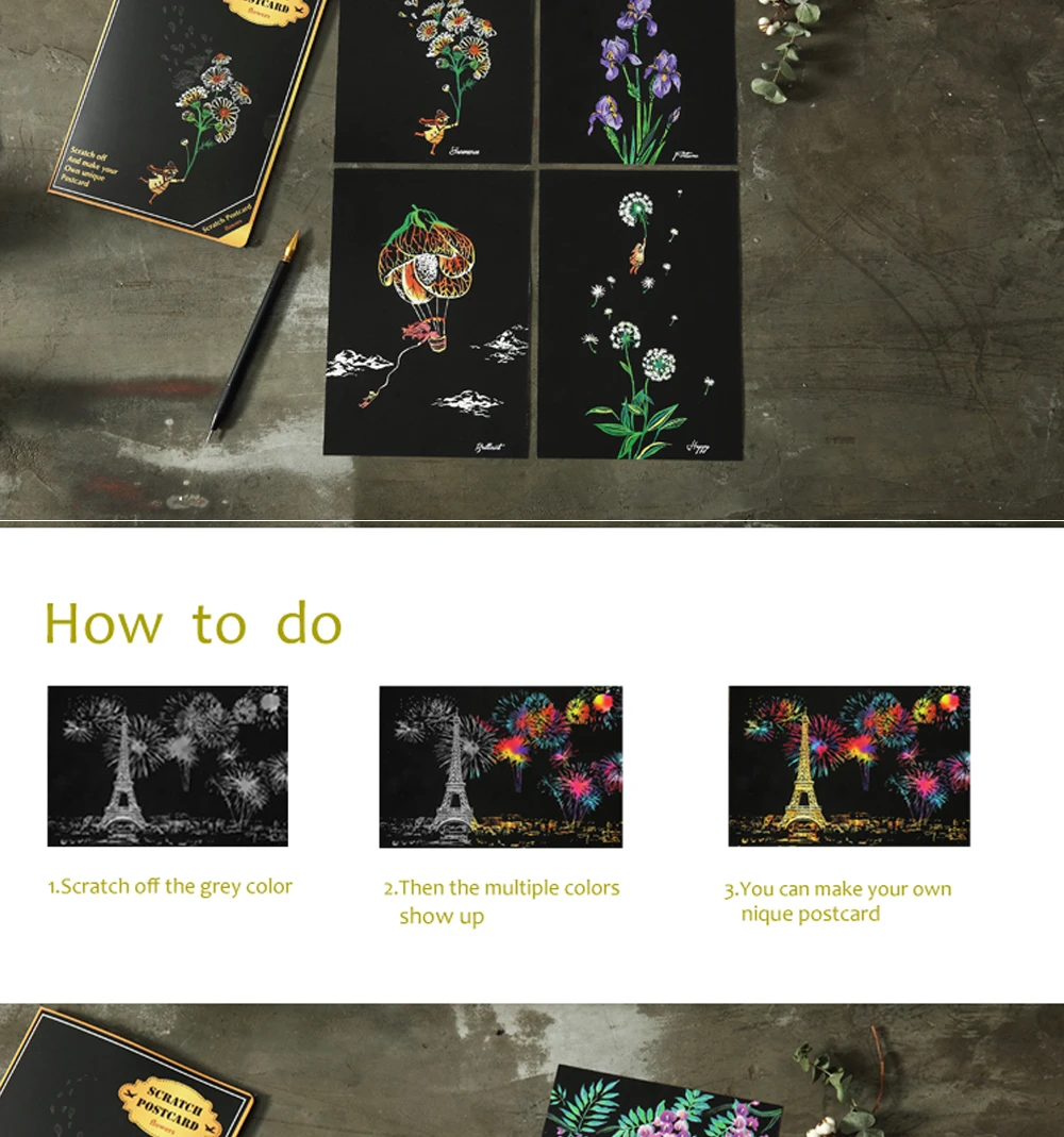 4 шт. DIY рисунок радуги скретч мини заметок со стилусом выскабливание Рисунок Игрушки декоративно-прикладного искусства для детей