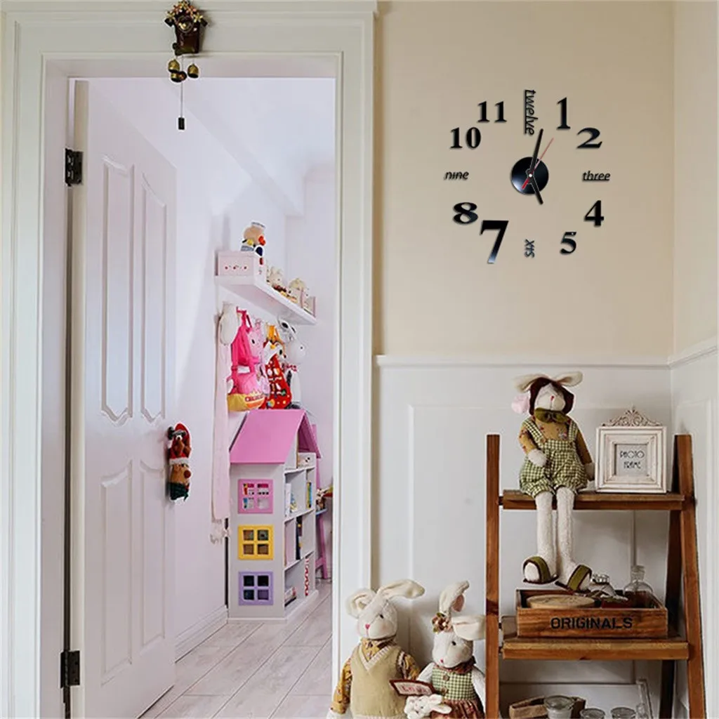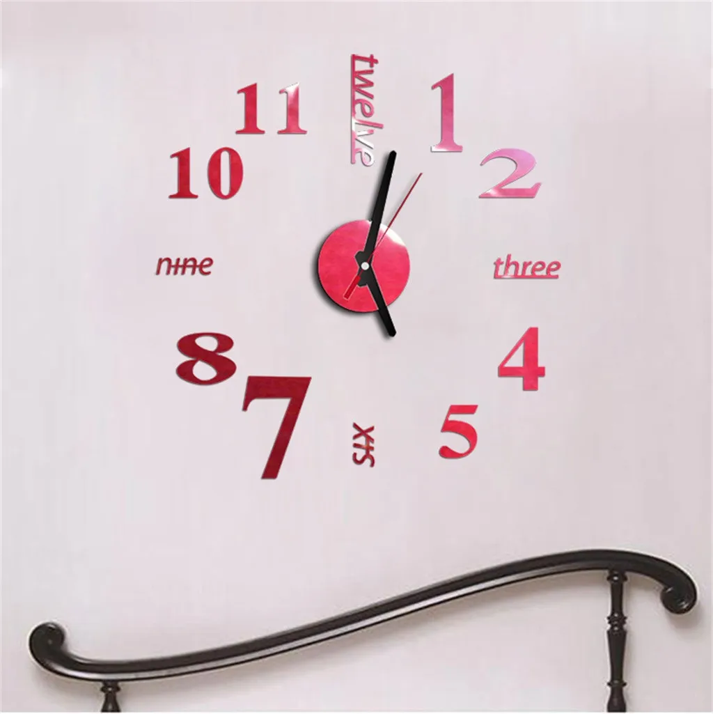 1 комплект Настенная Наклейка с зеркальным эффектом и часами (без аккумулятора)