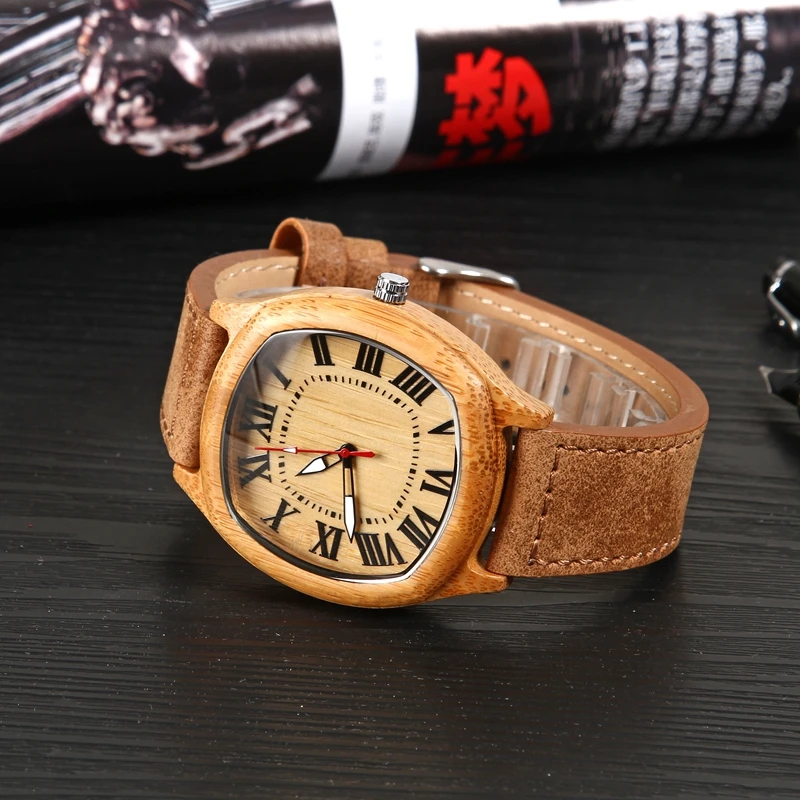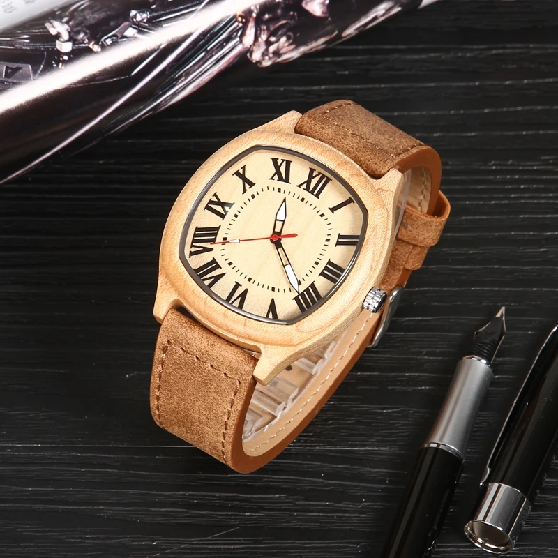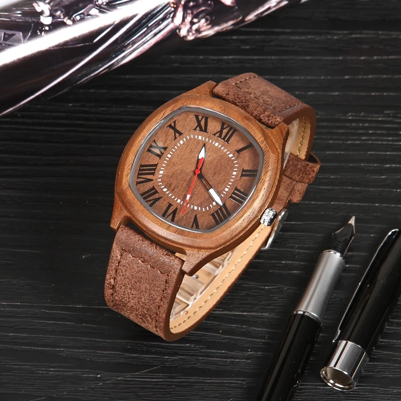 Креативные деревянные часы, мужские наручные часы неправильной формы для женщин и мужчин, кожаный ремешок, часы для подарков, reloj hombre, мужские часы 2019