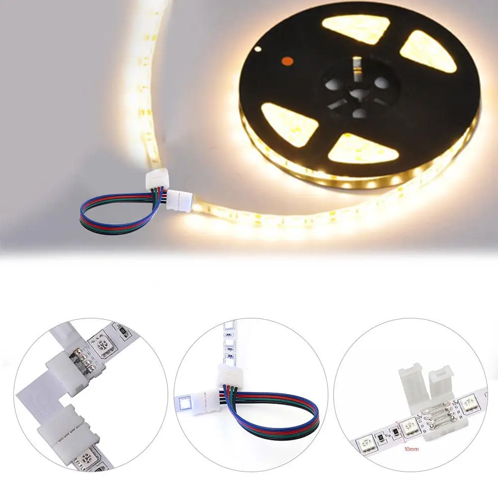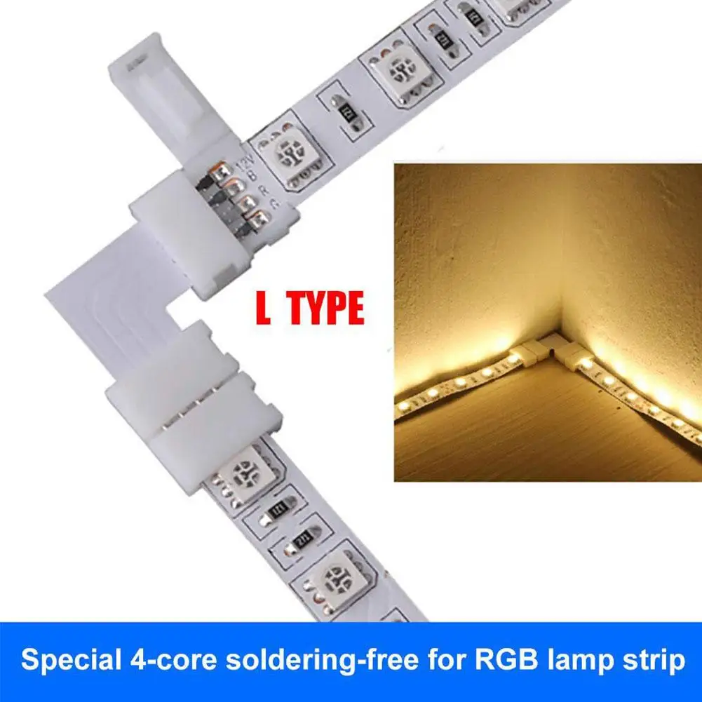 L-образный кнопочный коннектор, RGB светильник, набор лент, 5050 10 мм, Без припоя, светодиодные ленты, Аксессуары, легко установить