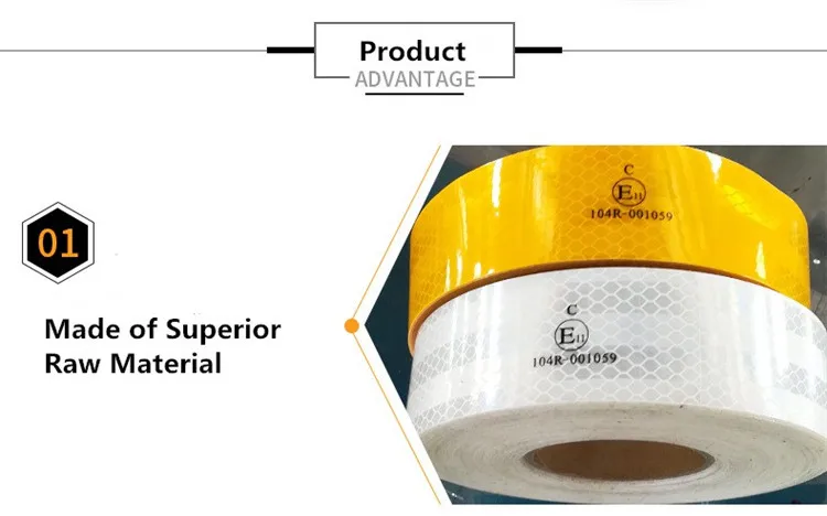 Size: 50 mm x 10 m Color: White/Red/Yellow Grade: ECE Weather resistance: 10 years Adhesive: Self-Adhesive Package Included: 1 roll reflective sticker Tips: We offer customized service for your size and pattern. If you are interested, please feel free to ask for bulk price.