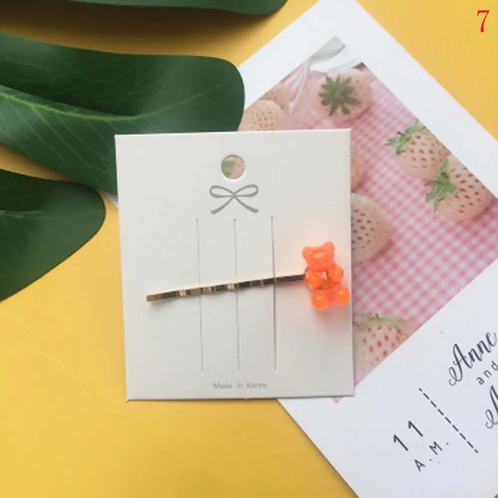 Material: Resin Color: yellow,red,purple,blue,green,pink,orange Style: Fashion style Gender: Women,Girls Package include: 1* hair clip These clips have two kinds: 1,2,3,4,5,6,7 belong to one kind,the others belong to another kind The Clips use the cute bear as the decoration Specially welcomed in kids A lovely clip makes you a lovely girl