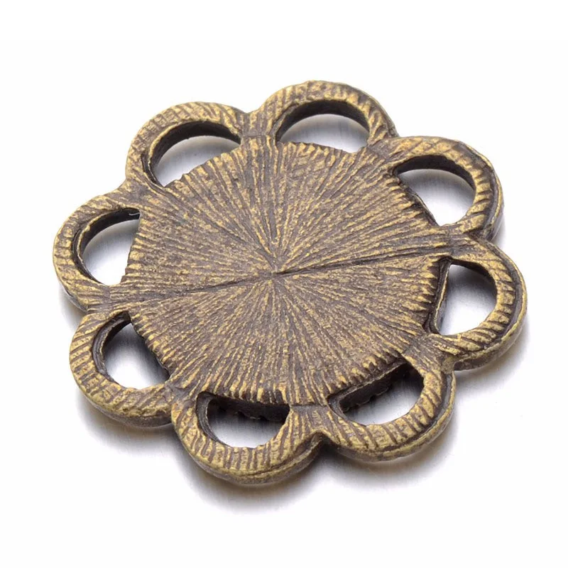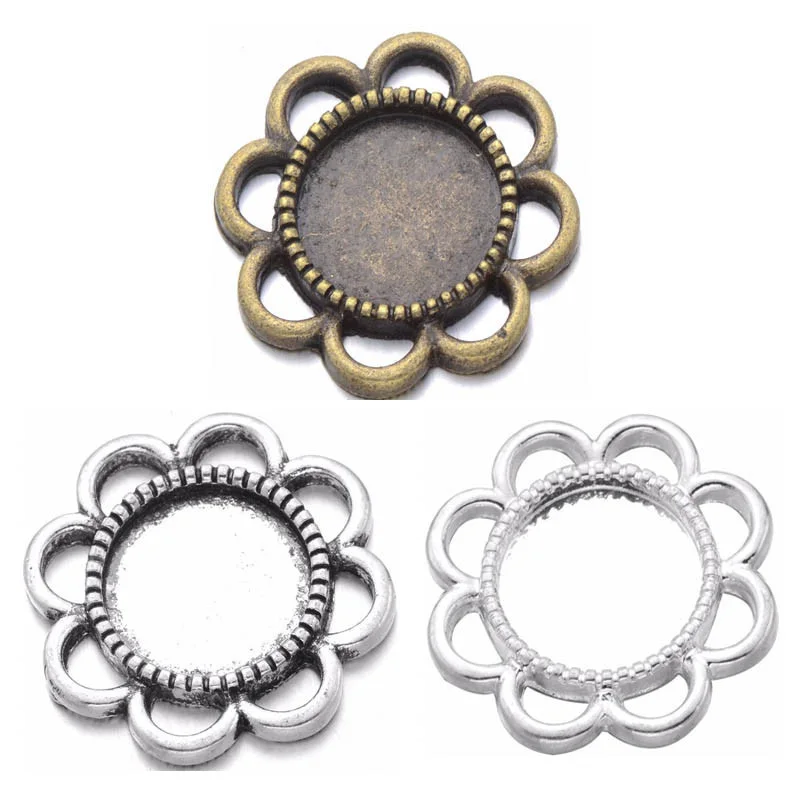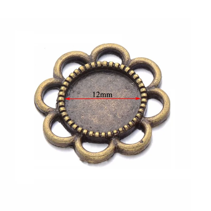 1.Название: 10 шт./лот 12 мм Ретро Круглый Цветок кружевной кулон настройки ободок кабошон лотки для стекла DIY ожерелье основные Jwewelry результаты
