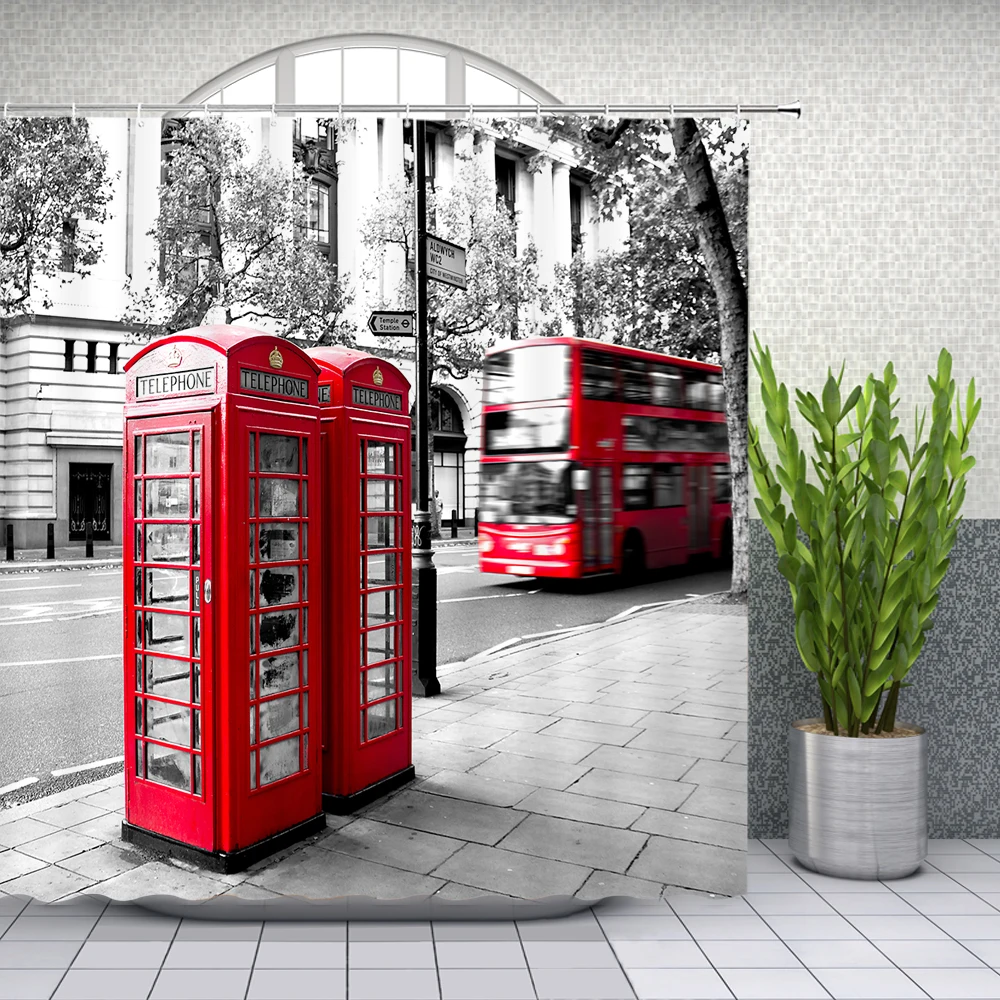 Ретро Лондонский телефонная будка для ванной занавеска для душа Биг Бен красный пейзаж Водонепроницаемая полиэфирная ткань для художественной ванной домашний декор