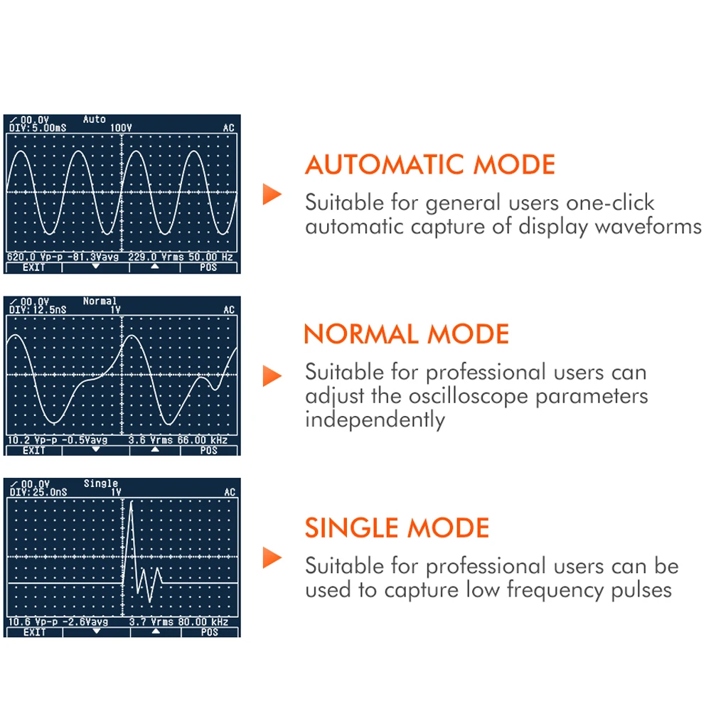 Однокнопочный осциллограф: не требуется Датчик осциллографа, измерительный сигнал непосредственно. Быстрое и точное измерение, четкий дисплей формы волны.