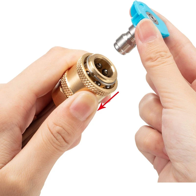 Быстро соединяющийся переходник: быстроразъемный Поворотный соединитель для подключения 1/4 дюймовых стержней и наконечников сопла; Его можно отрегулировать до 180 градусов для различных углов очистки, позволяет легко добраться до таких мест, как дно автомобиля, автомобильные диски и канализация.