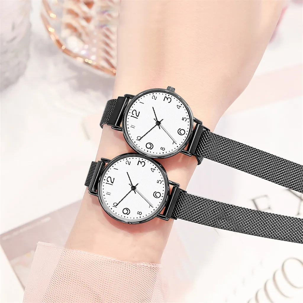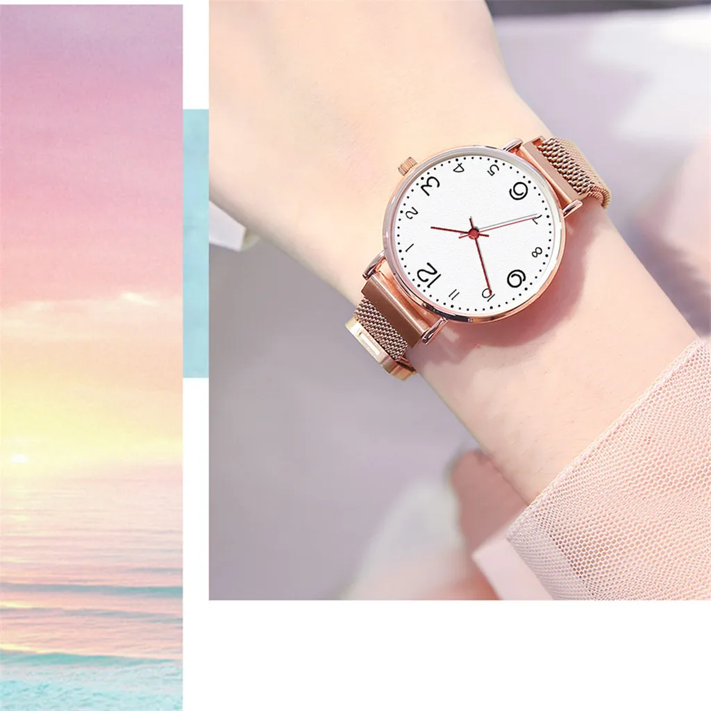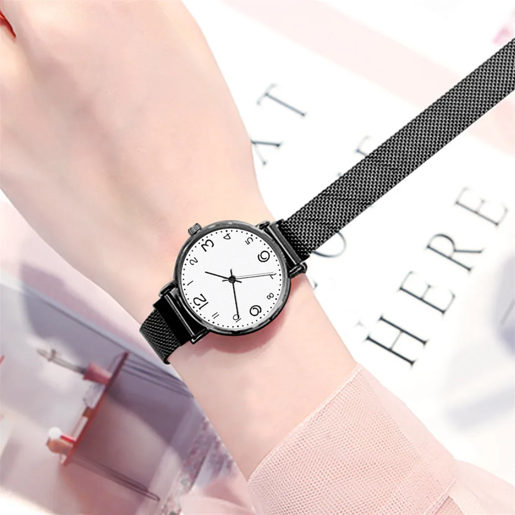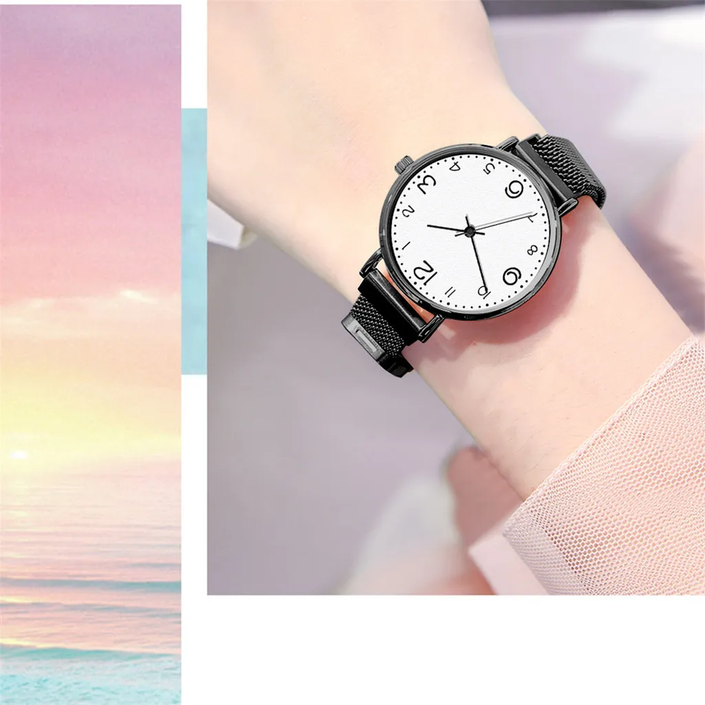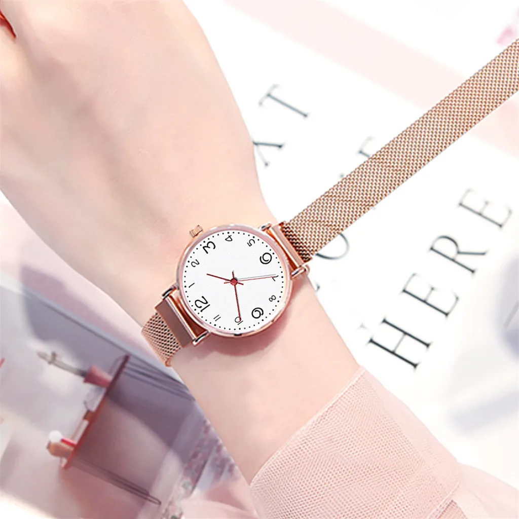 Fashion Women's Magnet Buckle Mesh Belt Watches Quartz Analog Round Wrist Watch