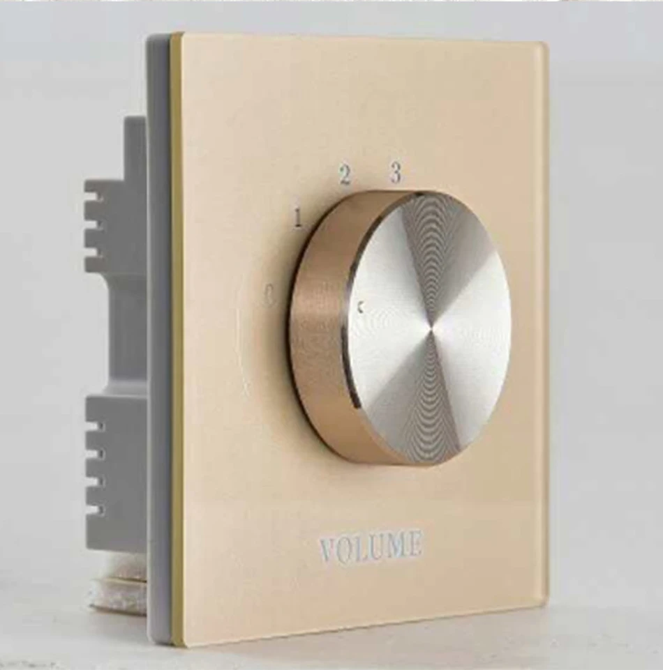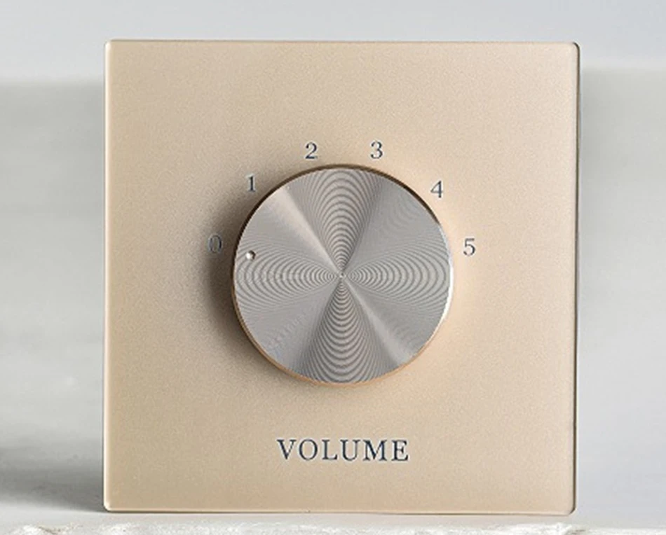 Переключатель настройки фиксированного сопротивления Регулировка громкости стеновая панель, 2.5D стекло, семиуровневый или пятиуровневый сегмент, Макс. 50 Вт, 4-8 Ом, двустороннее/одностороннее управление динамиком, цвет на выбор: цвет шампанского золотой, белый лунный свет