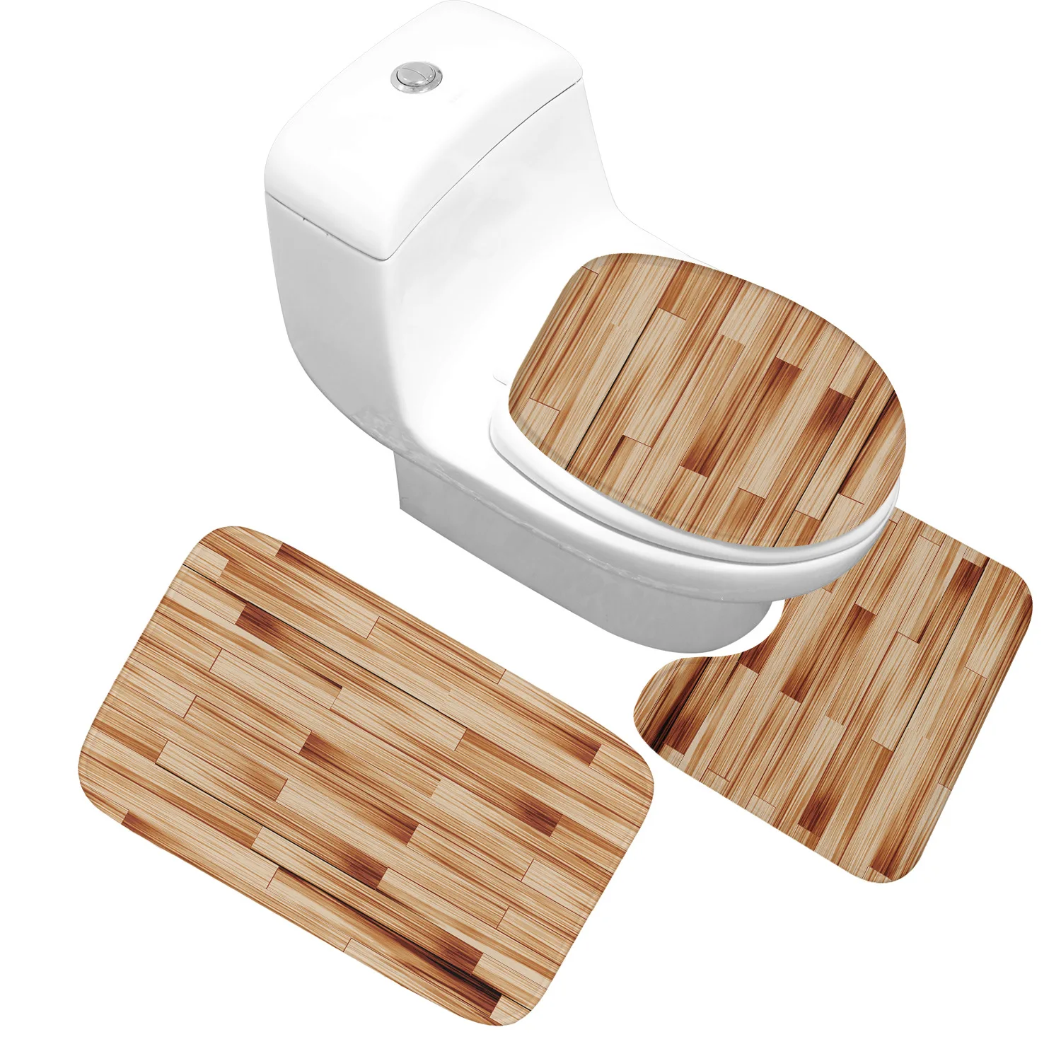 3 шт. коврики для ванной набор Противоскользящий ковер включает в себя пьедестал коврик для ванной и крышка для унитаза деревянный узор Набор ковриков в ванную