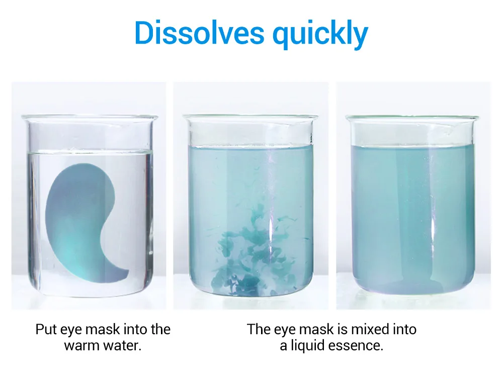 Быстро Растворяется Положите маску для глаз в теплую воду. Маска для глаз смешивается в жидкую эссенцию.