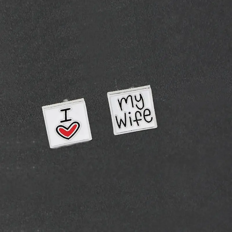 Уникальные запонки с буквенным принтом «I love my life» квадратной формы, тонкое мастерство и гладкая полировка.
