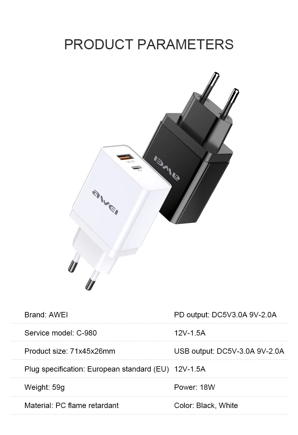 HUAWEl Быстрая зарядка 18 Вт, usb-выход совместим с QC3.0 и HUAWEI FPS