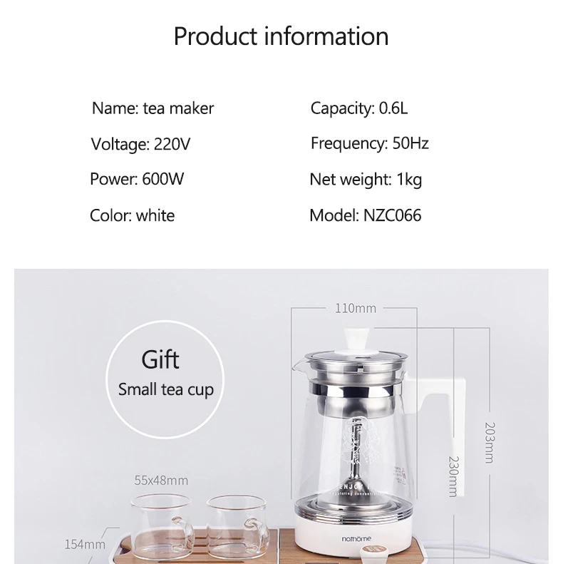 220 V Электрический автоматический Электрический чайник Стекло вареная Чай горшок сохранения здоровья горшок Многофункциональный Чай, тем самым позволяя зернам раскрыться фильтр 600 мл