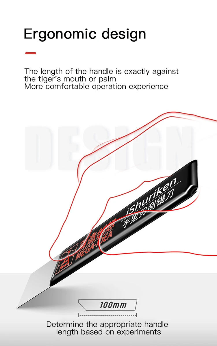 Характеристики: -- изготовлен из высокотехнологичного материала с памятью. -- отлично подходит для высокопрочной работы с твердостью. -- Нескользящая ручка. Упаковка: 1 * скребок оловянный нож