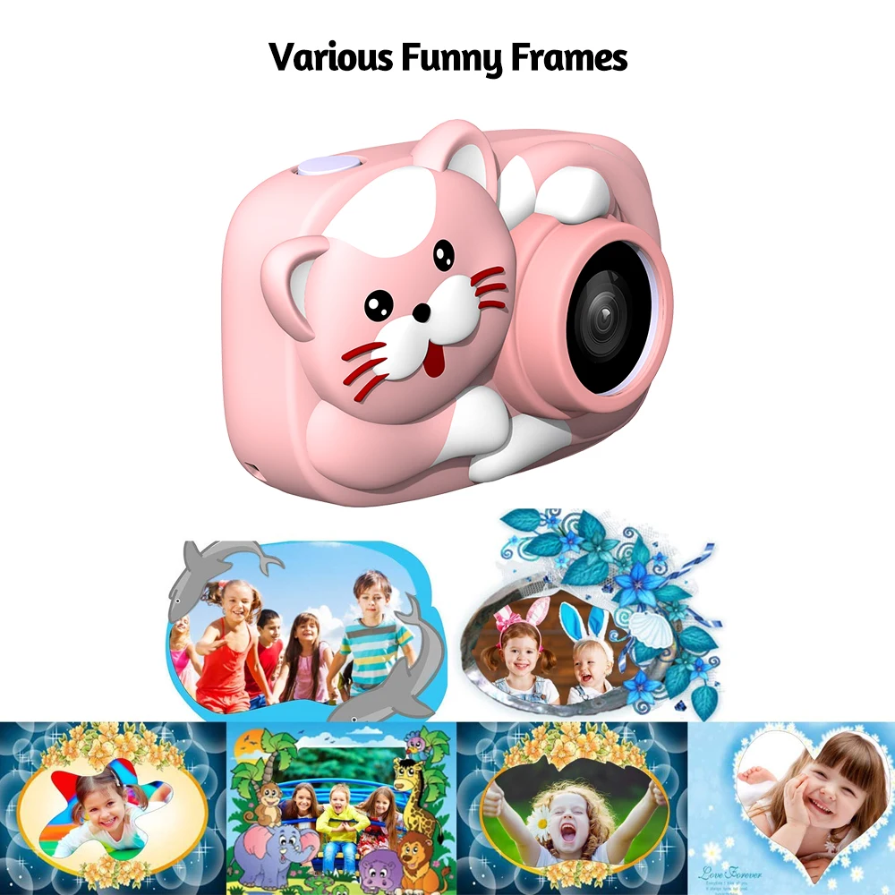 Простота в эксплуатации и функциональное разнообразие:Всего несколько кнопок управления, удобно для детей в управлении; Несколько функций, например, съемка с эффектом «взрыв», съемка во времени, фонарик, 30 забавных кадров и 8 сцен. Дети могут полностью отображать свое творчество с помощью этой камеры.