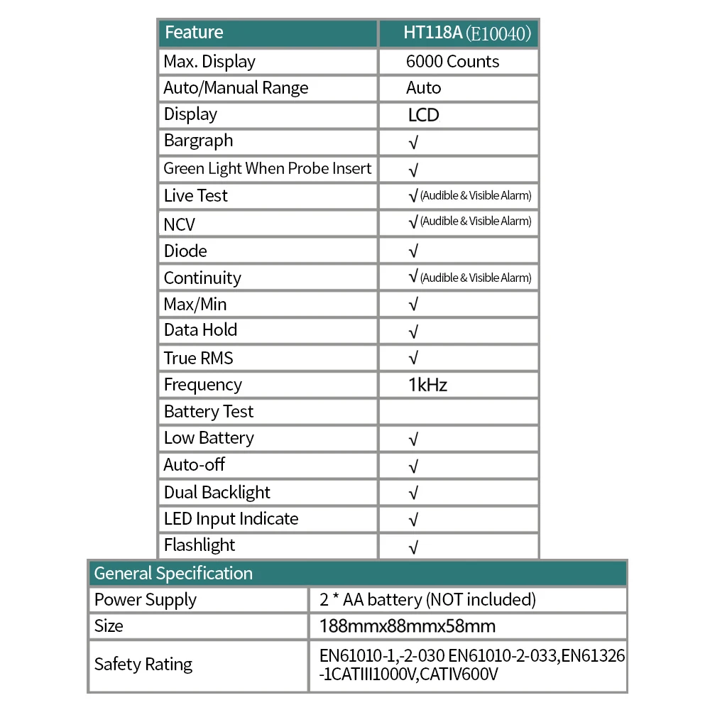 Другие функции: барграф, максимальное/минимальное удержание, Удержание данных, непрерывность, истинная RMS, индикация низкого заряда батареи, двойной цветной задний светильник, светодиодный индикатор входного разъема, рабочий светильник и т. д.