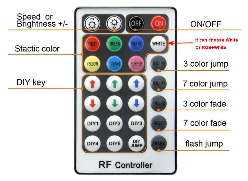 -Режим изменения пульта ДУ: static13 цвет (красный, зеленый, синий, желтый, Mixd белый, чистый