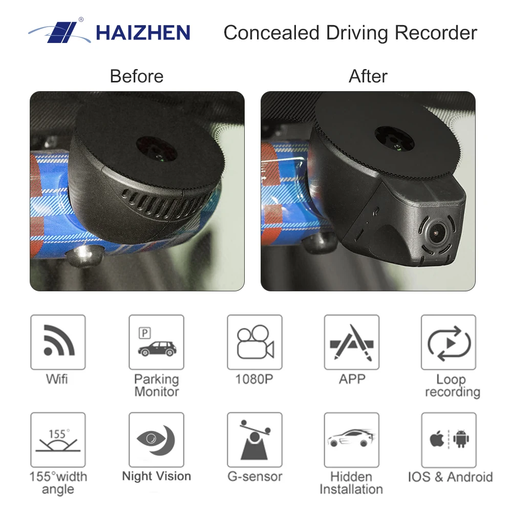 HAIZHEN Dash Cam. Специально разработан для конкретных автомобилей. Более роскошный после установки Сохраните оригинальный автомобиль, сохраните оригинальный внешний вид, чтобы добавить мощную функцию DVR для вас, в то же время, чтобы вычесть проблемы на стекле для вас