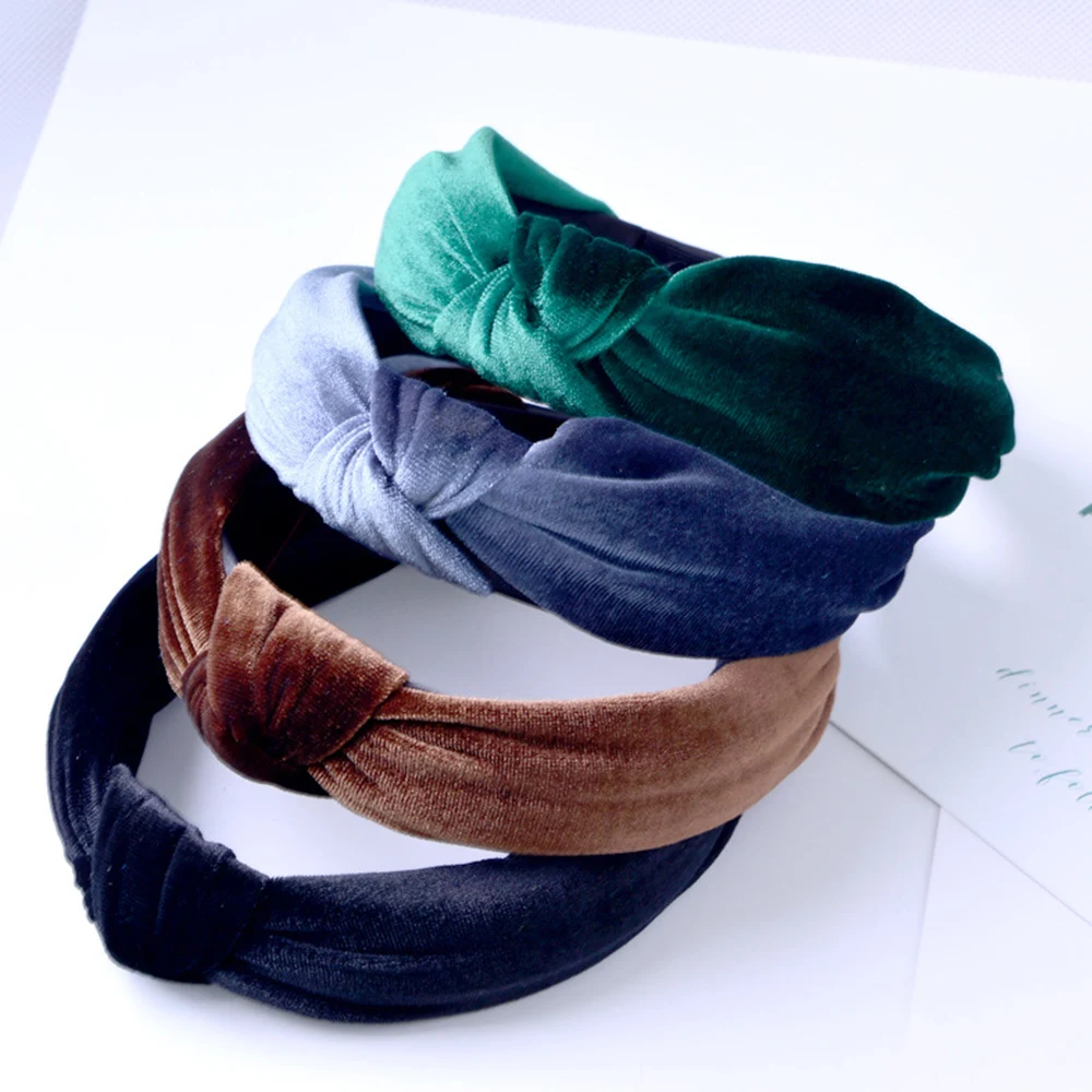 Лента для волос Для женщин и девочек Твердые Цвет Бархат В Корейском стиле Мягкая замша Узлом Повязка для волос Ручной работы С бантом Аксессуары для волос