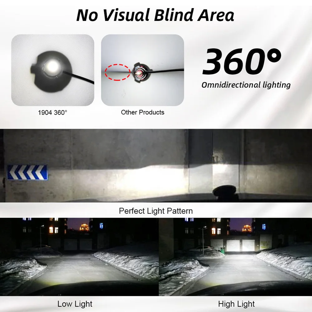 *1. High brightness: The latest CSP with 6000K cold white LED chip; 200% brighter than the existing halogen headlights. Advanced technology ensures perfect beam patterns without any black spots or fog lights .;