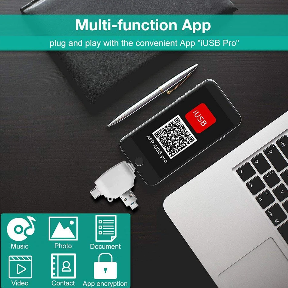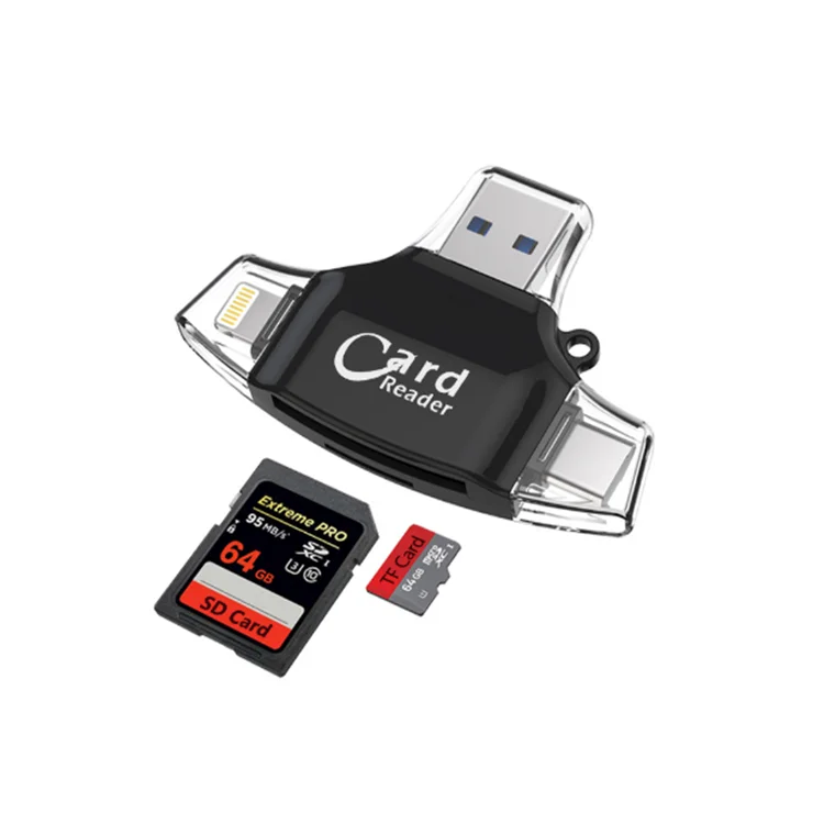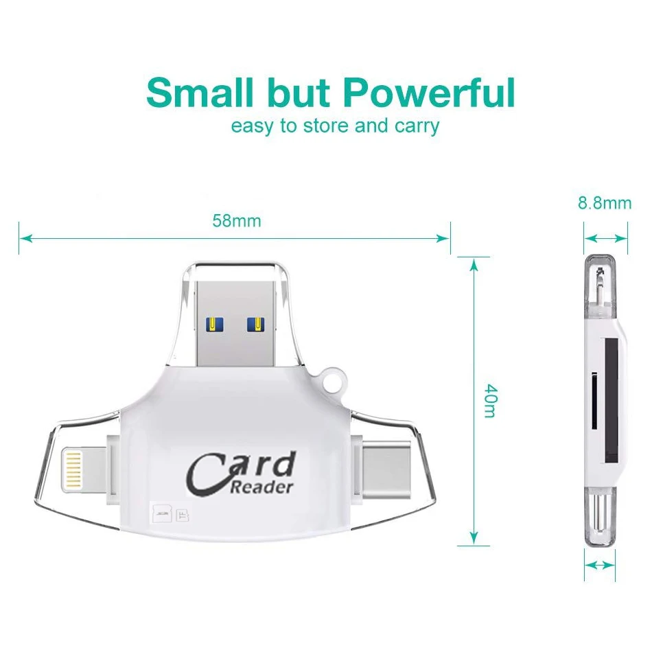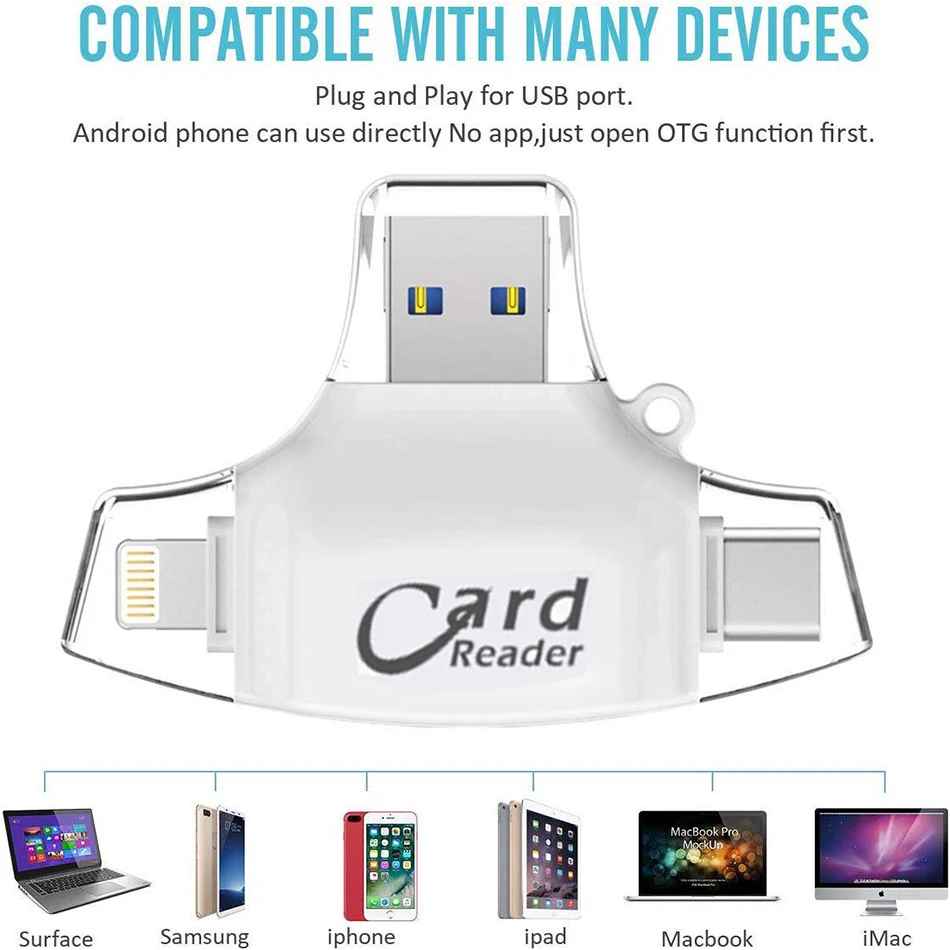* 4 в 1 устройство для чтения карт, маленький, портативный дизайн для iOS/Micro SD USB/USB C разъем.(Android телефон должен открыть функцию OTG);