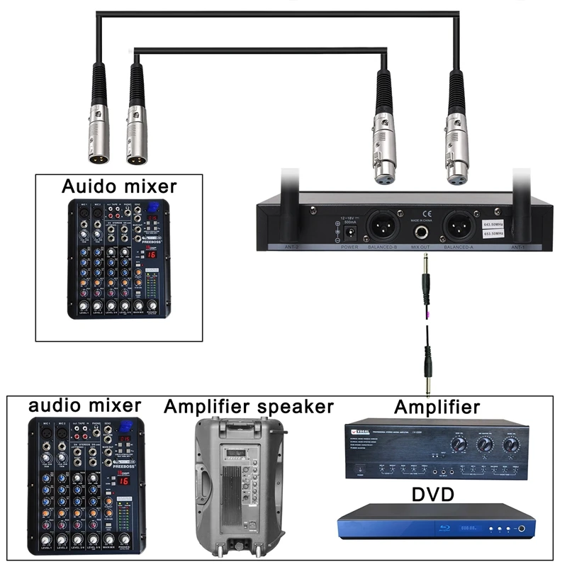 If you need other frequency, please tell us before you order. HOW TO USE Wireless Microphone:1) 6.35 plug cable to audio mixer (there is one piece cable in the package)