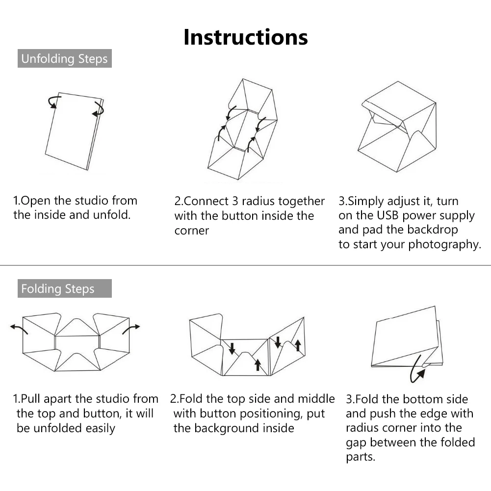 Assemble your own photo studio anywhere in minutes, you can unfold this LED lightbox studio and place it on any surface to get the perfect backdrop for small articles business photography, taking pictures for products.