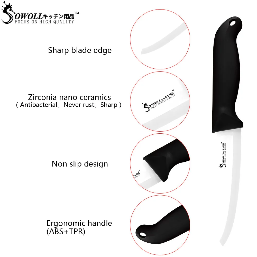 Sowoll керамический нож шеф-повара 3 '4 ''5'' 6 ''белый черный лезвие пластиковая ручка нарезки утилита нож для очистки овощей фруктов инструменты