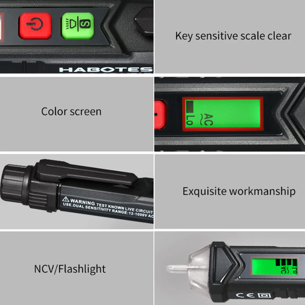 Тестер напряжения имеет Бесконтактный дизайн и форму ручки, он может обнаруживать напряжение переменного тока в 12 В ~ 1000 В и 48 В ~ 1000 В. Портативная форма ручки, удобно носить с собой. Широко используется в исследовании промышленной мощности и домашней линии.