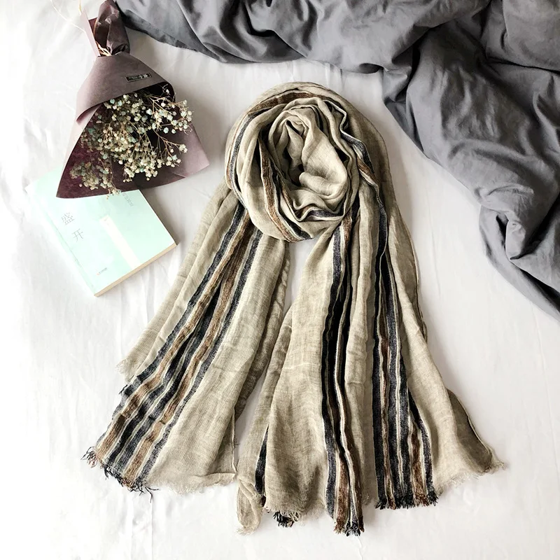 2019 New Japanese Unisex Style Plaid Winter Scarf For Women Men Blends Cotton And Linen long women's scarves shawl fashion men scarf