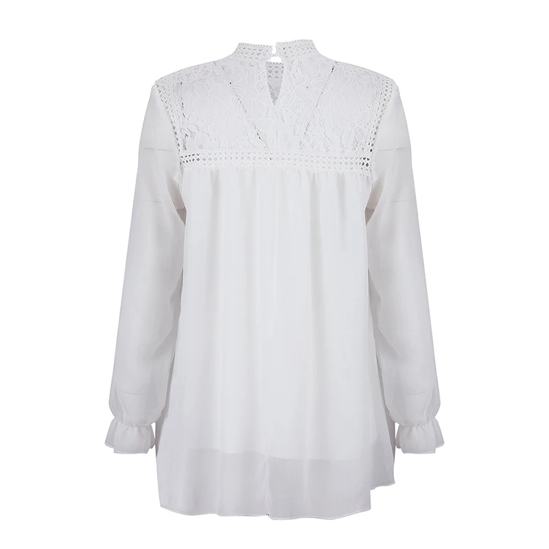 Женская открытая кружевная Свободная блузка с длинным рукавом, топы, повседневный джемпер, футболка, базовая футболка