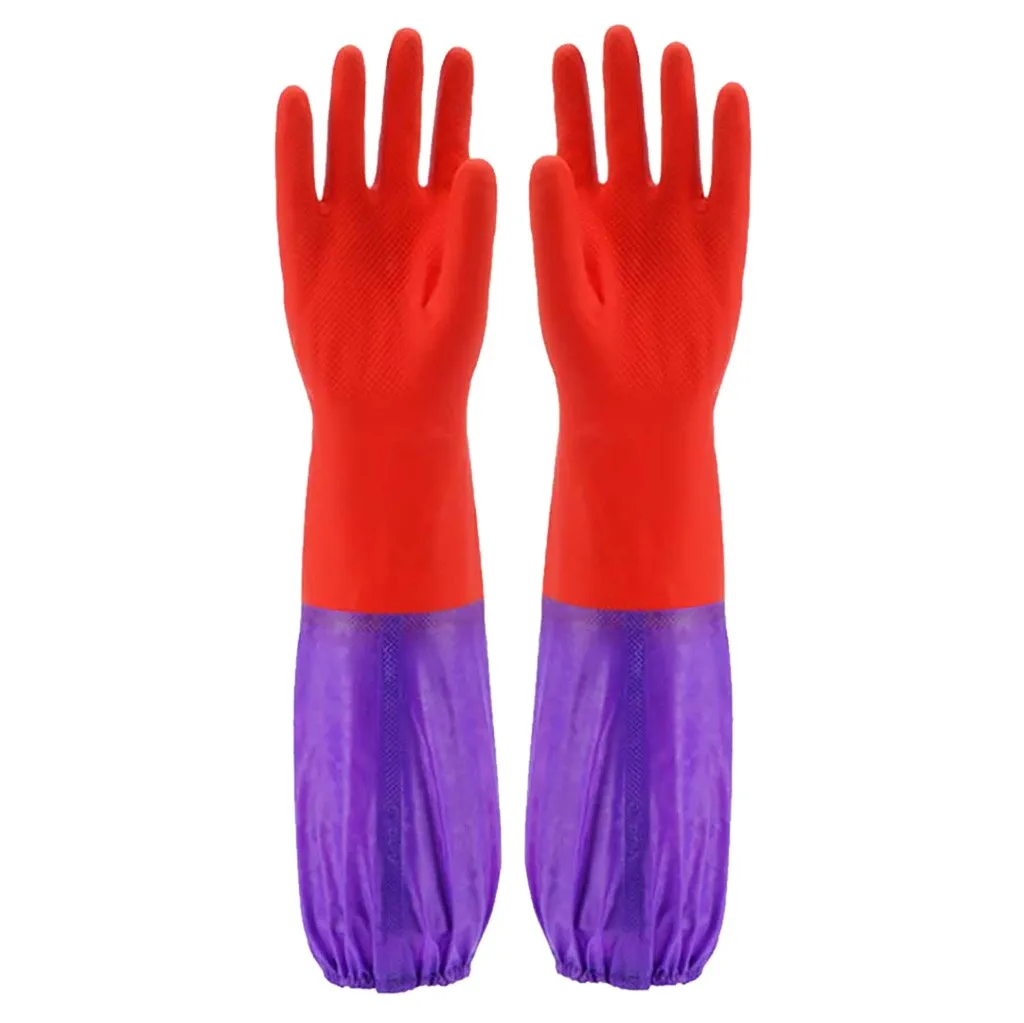 Теплые резиновые перчатки с длинным рукавом, красные кухонные моющие блюда, водонепроницаемые бытовые перчатки для мытья автомобиля