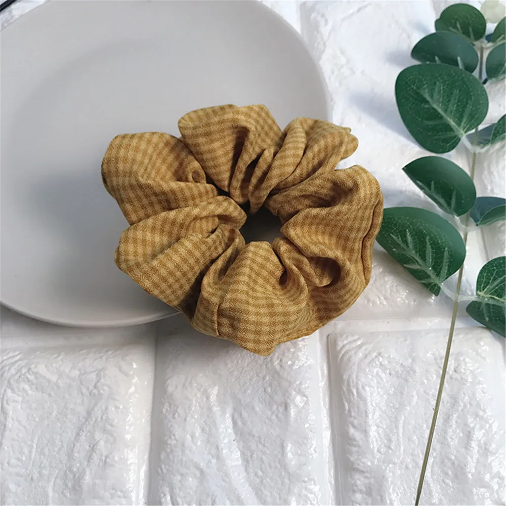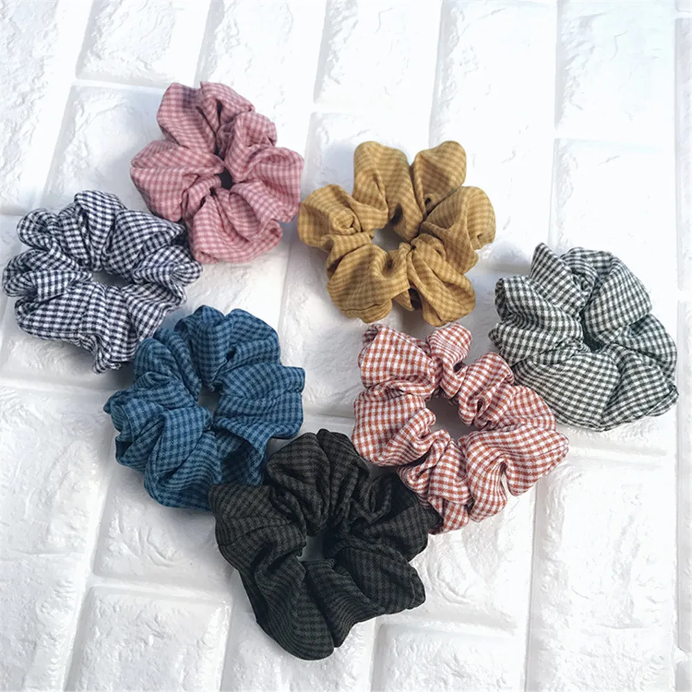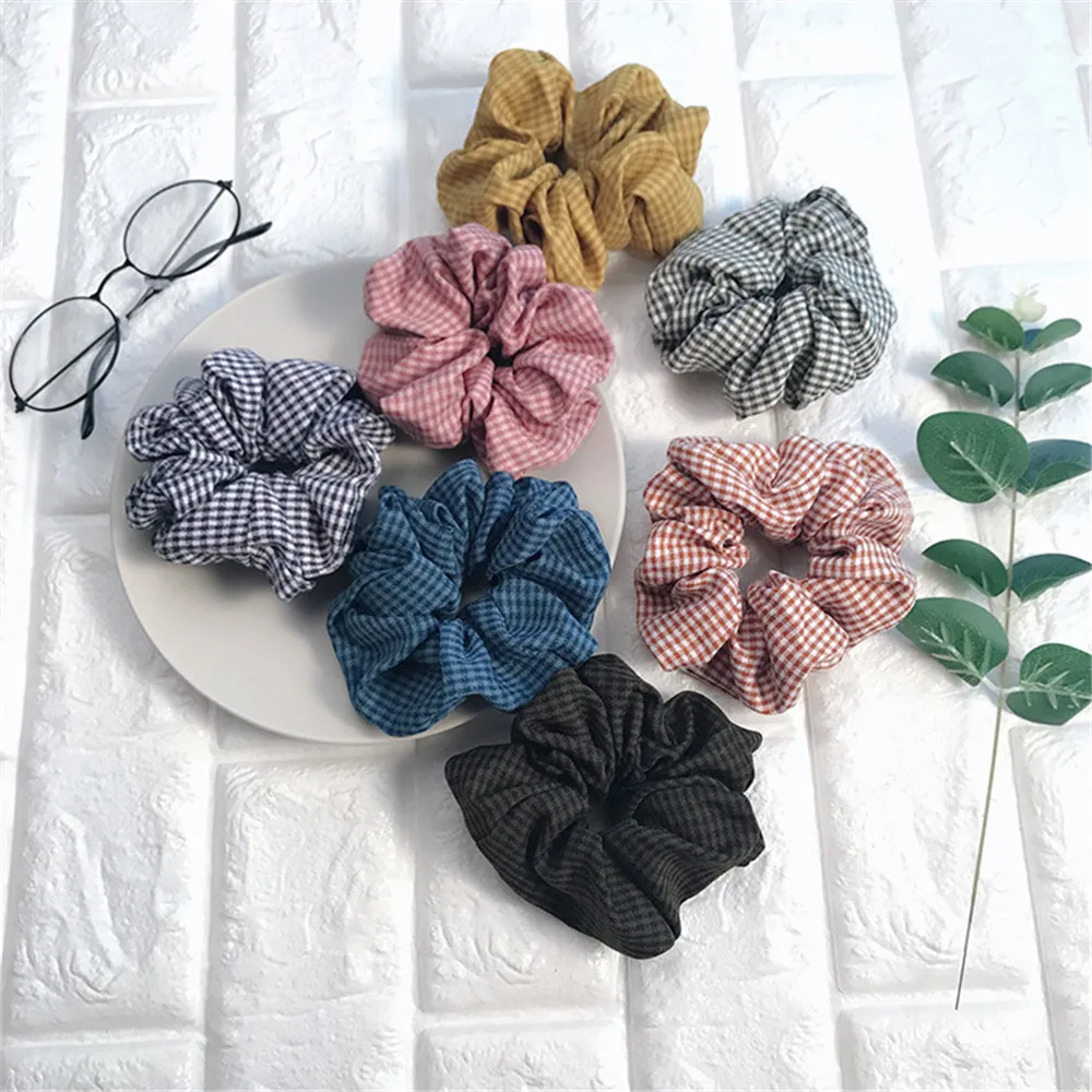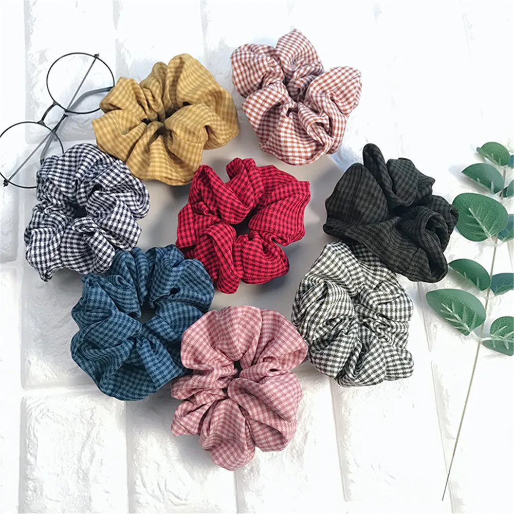 Новый Сезон осень-зима Негабаритных Ткань В клетку Резинка для волос Хлопок и лен Супер Мягкий High-end Лента для волос