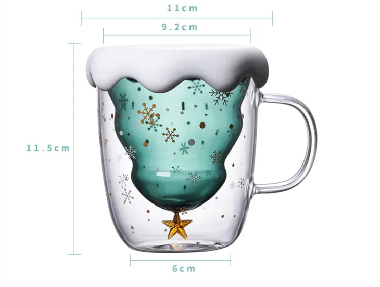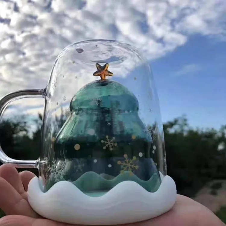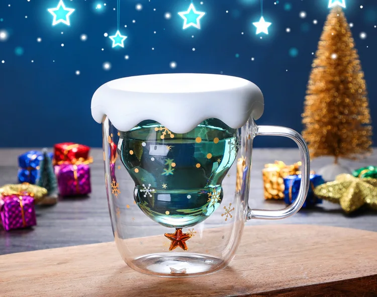 Рождественская Кружка со снежинками, двойная стеклянная кружка, термостойкая кружка для кофе, чая, молока