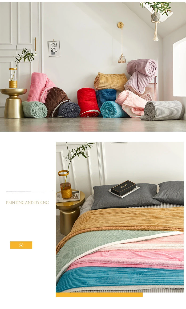 A Side Material:Flannel B Side Material:Cashmere Feature:AB sided Size:100x160cm 150x200cm 180x200cm 200x230cm Usage:The duvet case can be used as a quilt cover and a blanket for sofa bed. Note:Please allow 2-5cm difference about the size and bit color difference on web shopping.