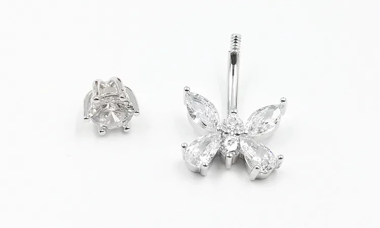 925 пробы Серебряное прозрачное Кристальное кольцо для пупка ювелирные изделия