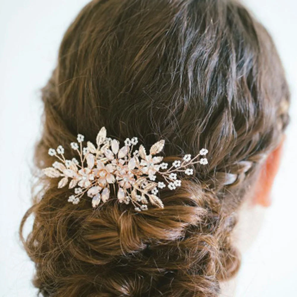 Свадебные платья Стразы, украшенное цветами и бусинами Расческа для волос Обувь для невесты Плетеный Бусины Головка Ручной работы Мода Золото