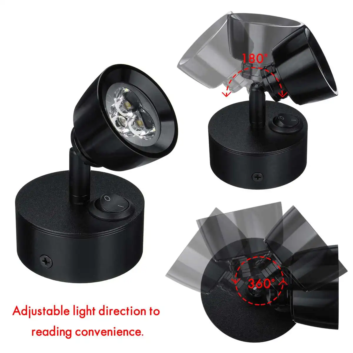 4. Точечный светильник вращается на 180 и 360 градусов. Просто установите светильник на поверхность с помощью винтов.