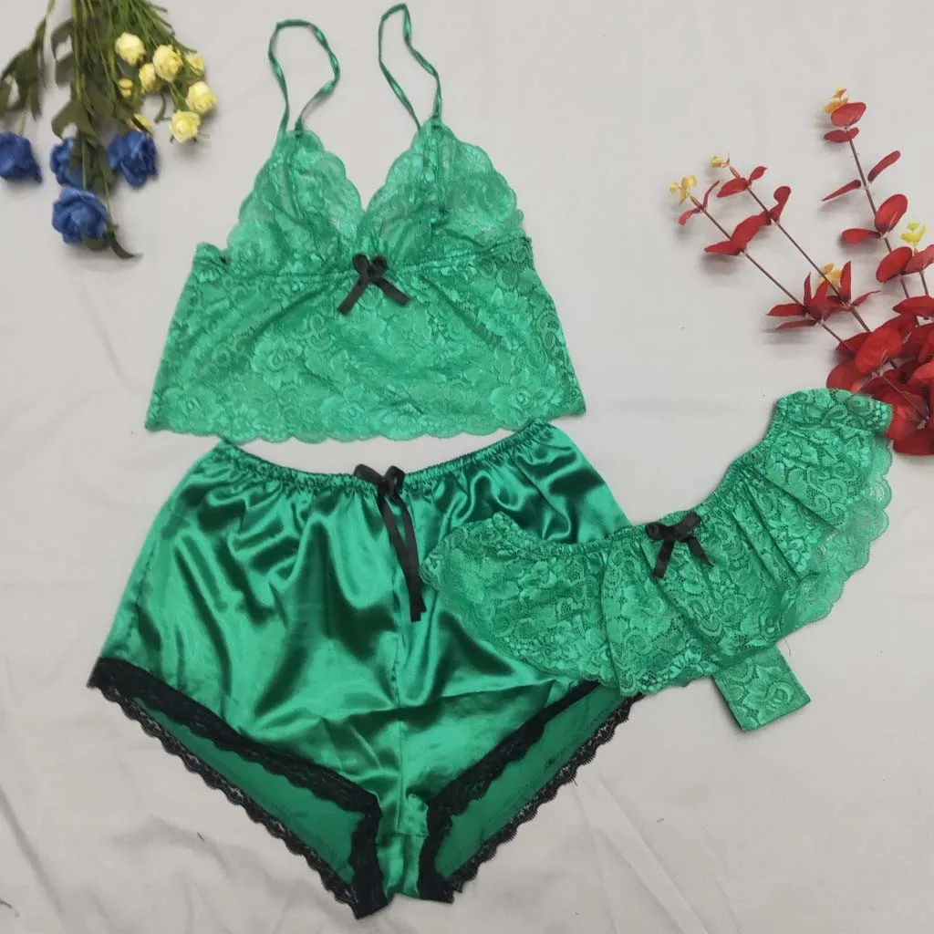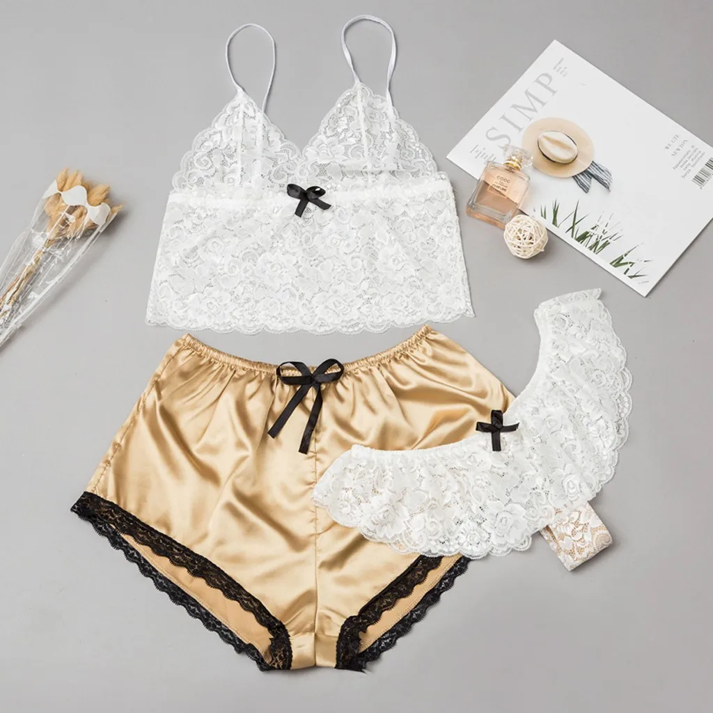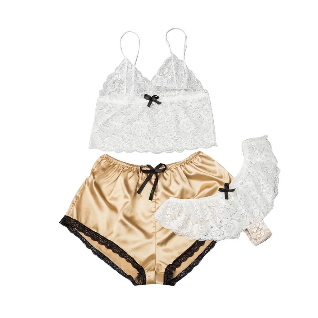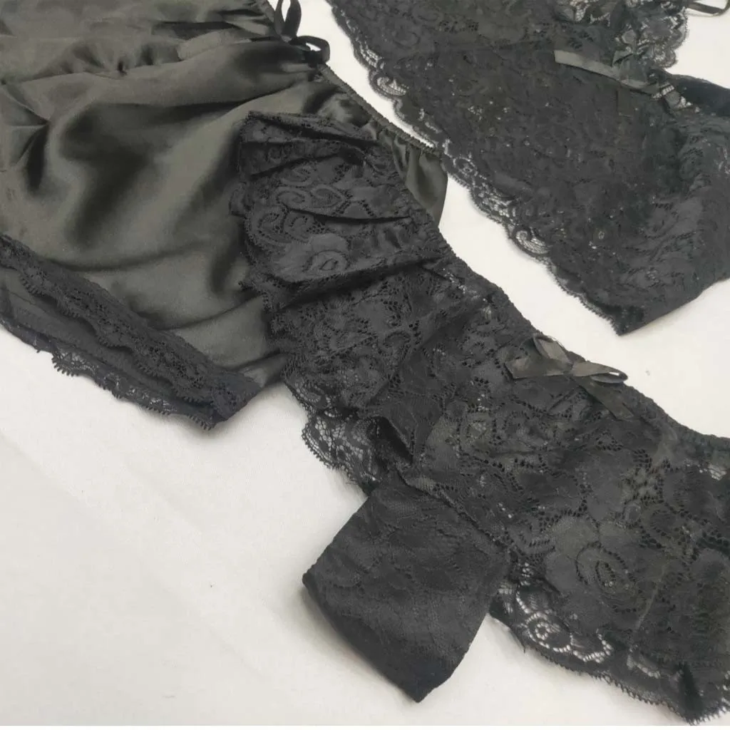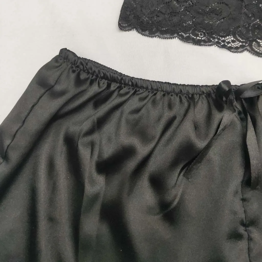 Шелковые пижамы сексуальное атласное белье кружевные шорты набор женское нижнее белье пижамы S-XL