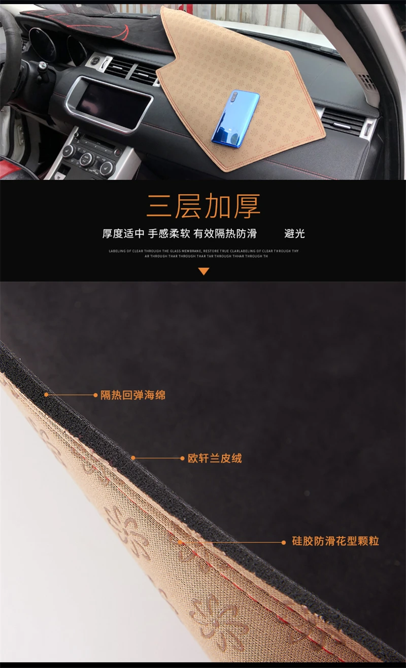 У нас есть 3 цвета. Название: крышка приборной панели/приборная панель. Материал: замша + Силиконовые противоскользящие частицы Посылка: одна панель приборов и одна инструкция. Время доставки: 5 дней. Примечание: Этот Dashmat не является универсальным продуктом, когда вы покупаете его, пожалуйста, обратите внимание на ваш автомобиль